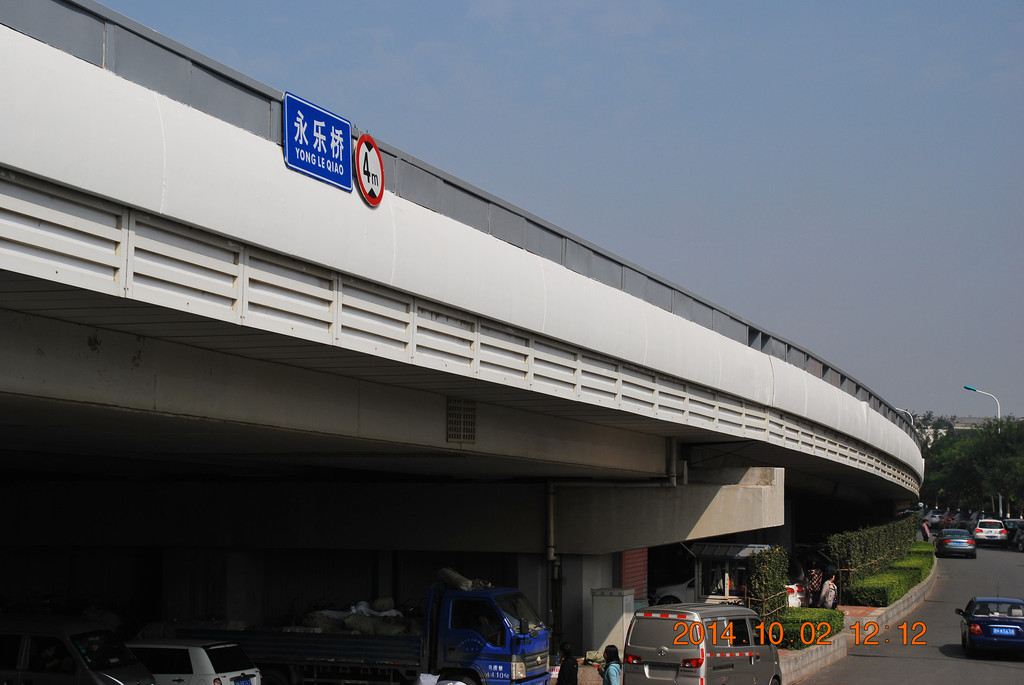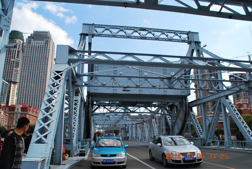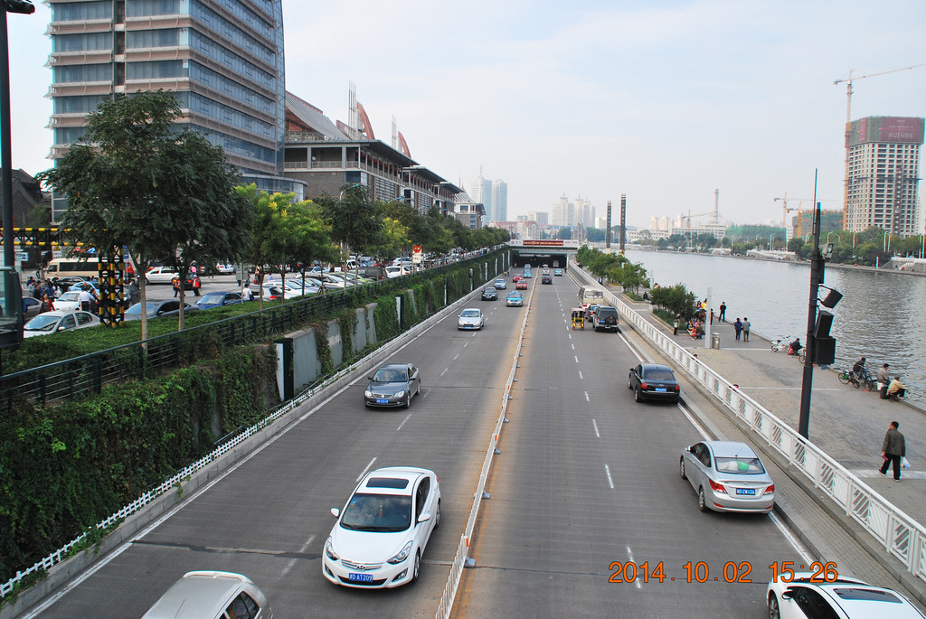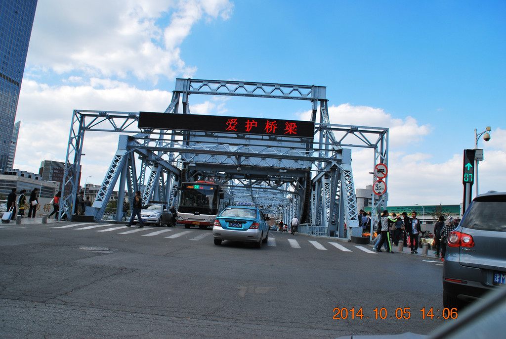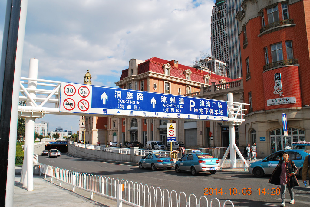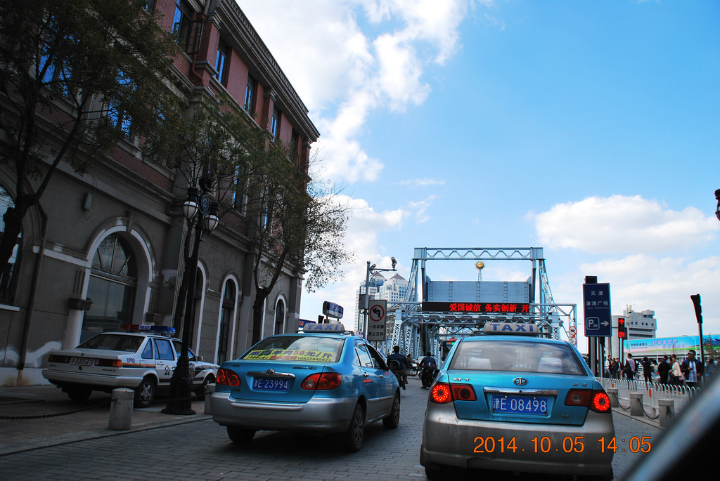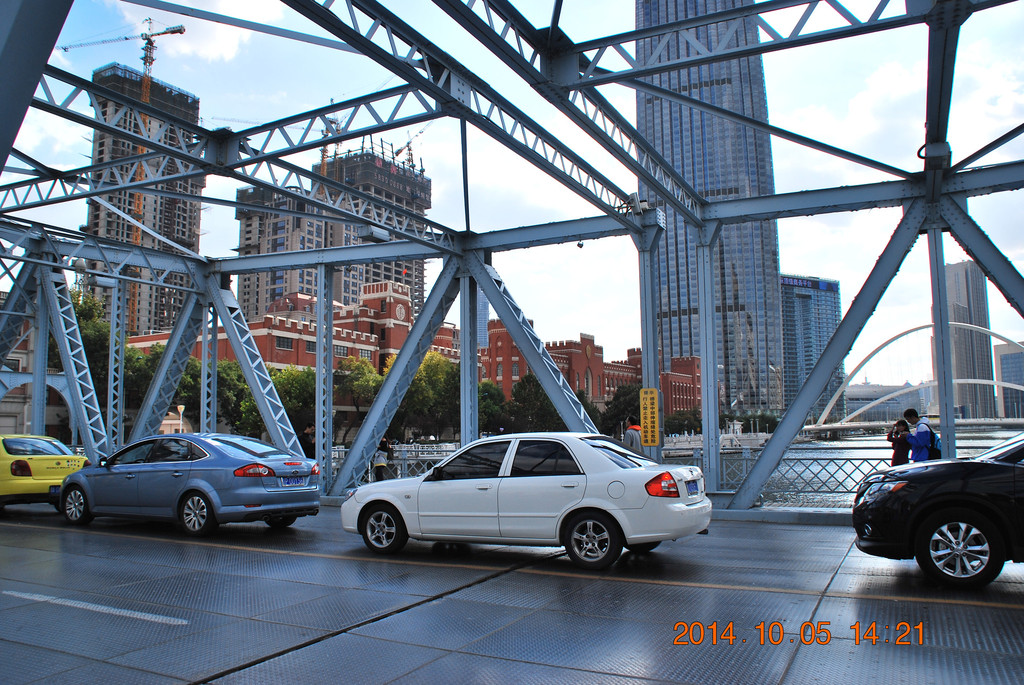 解放桥南侧的张自忠路,其中的一段为隧道。从隧道内可拐弯驶入津湾广场地下车库,我当时就把车停在那,然后拍摄解放桥。
