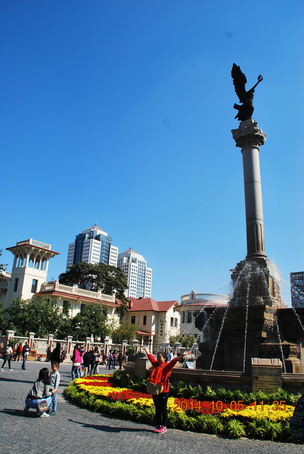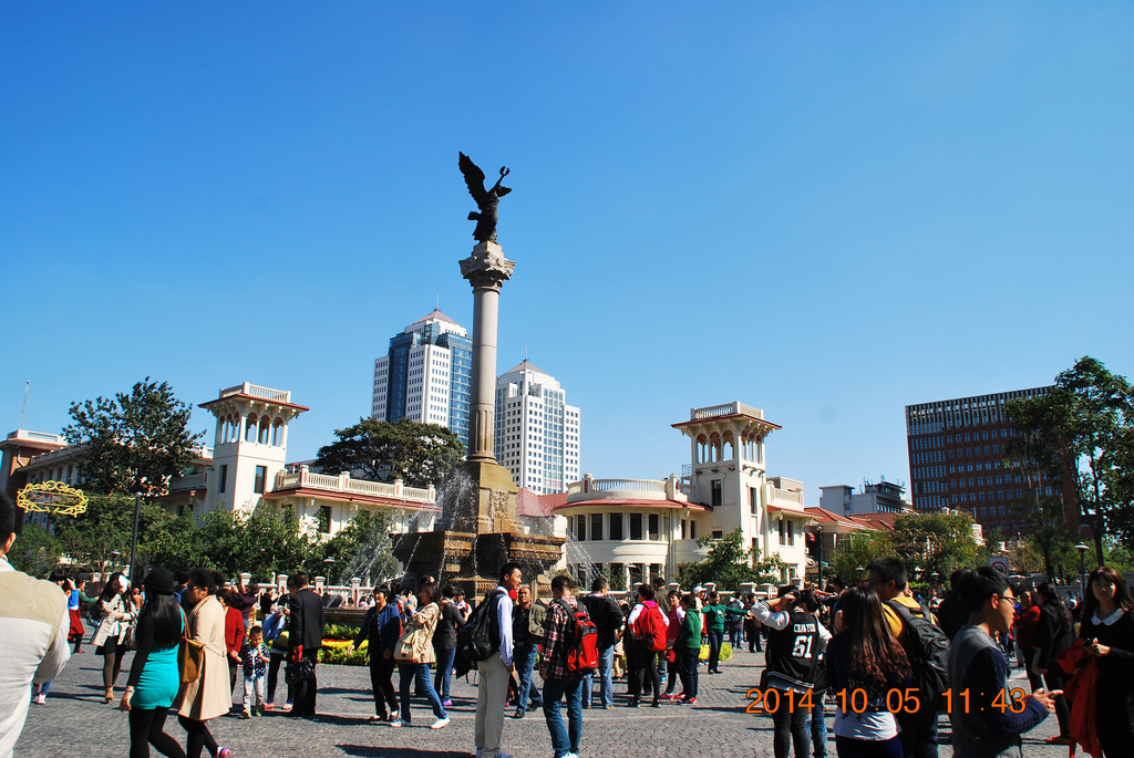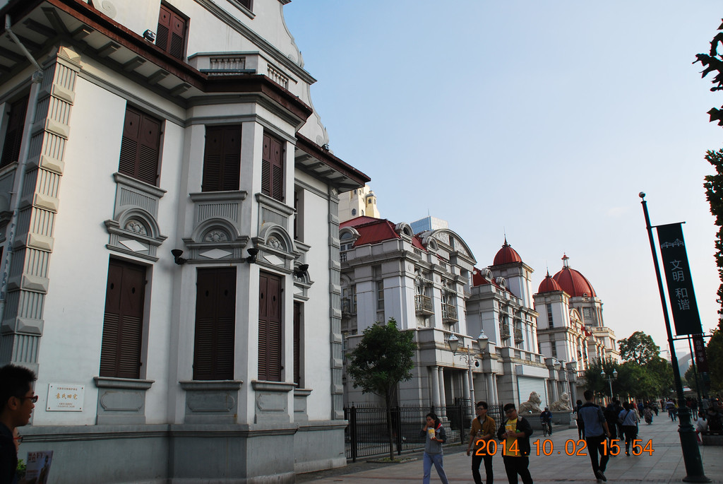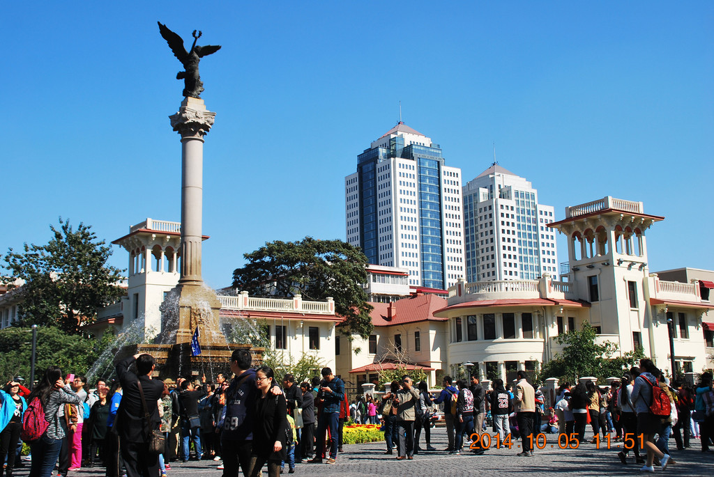 与火车站隔河相望的津湾广场,是近年建设的一处欧式建筑群。