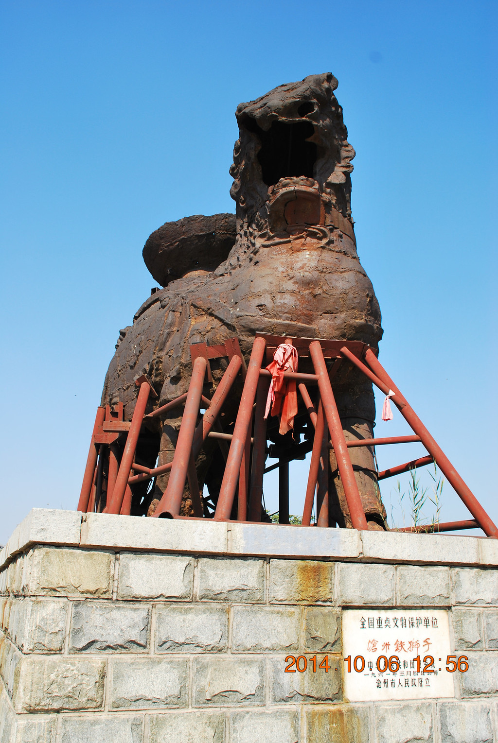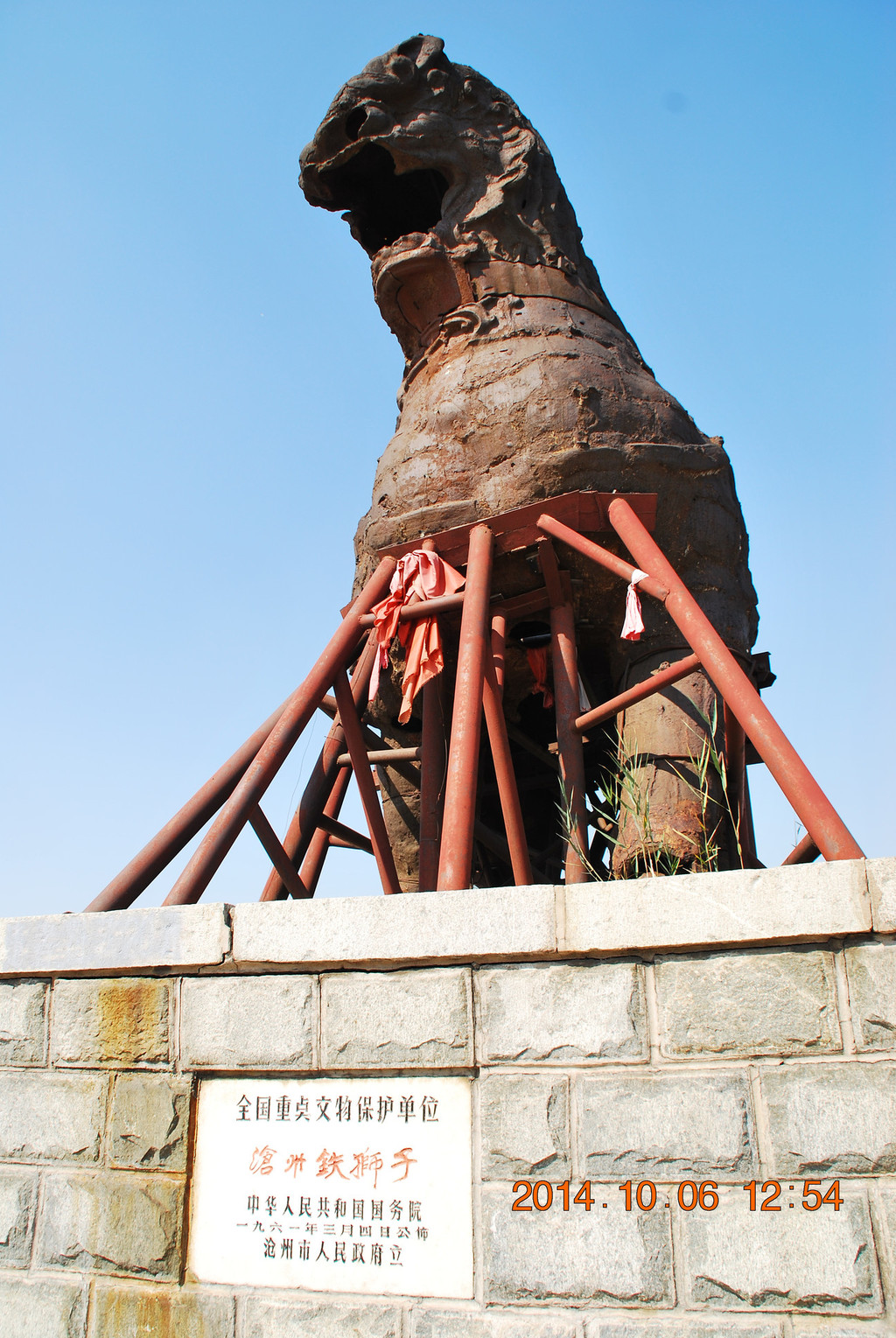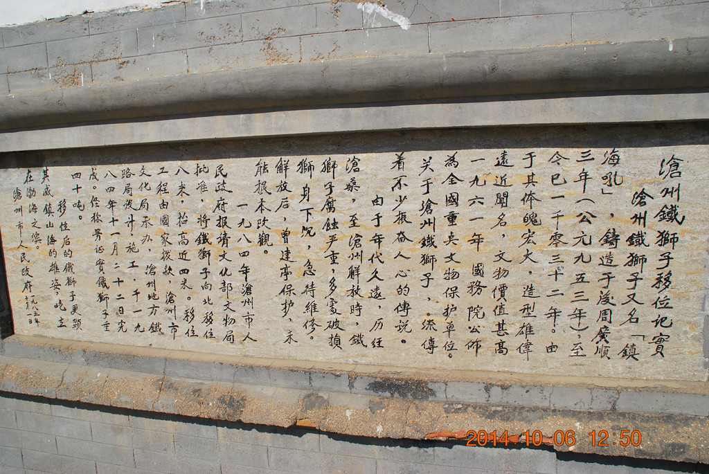 沧州铁狮子,国务院1961年3月4日公布的第一批全国重点文物保护单位,石刻及其他类,时代为后周。门票30元。