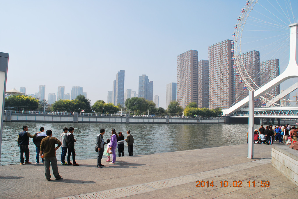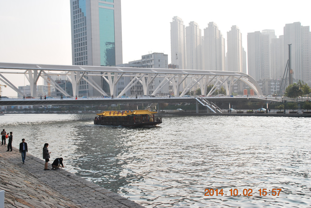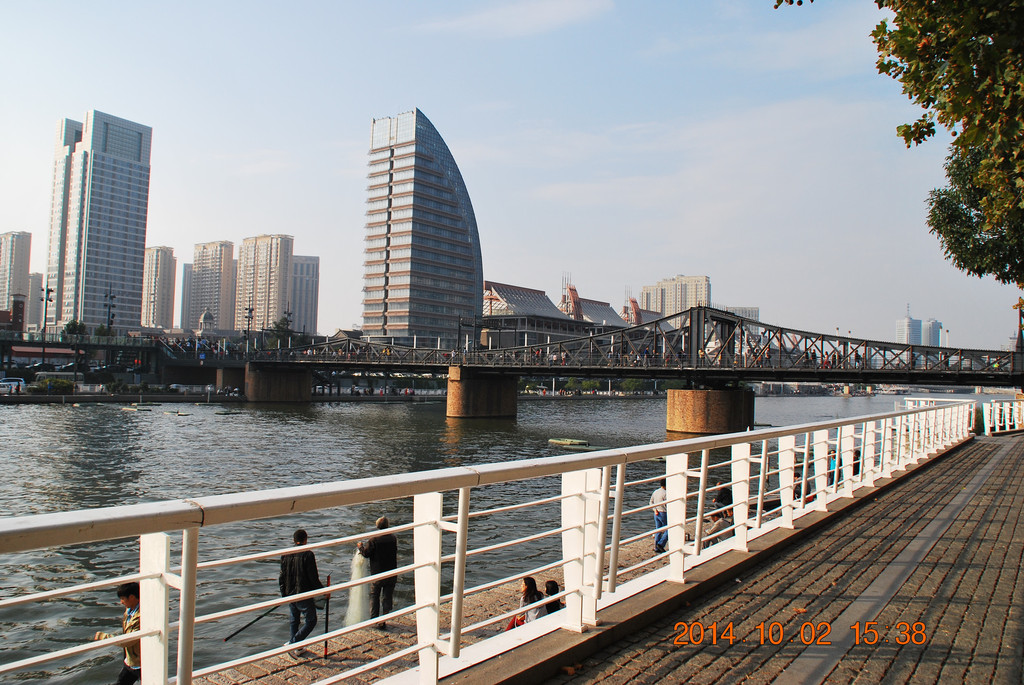 由大悲禅院往南百余米就来到海河边,拍摄“天津之眼”的较佳位置。