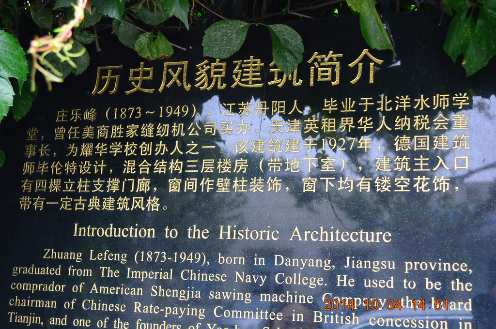 庄乐峰旧居,天津市文物保护单位,主楼建于1926年。