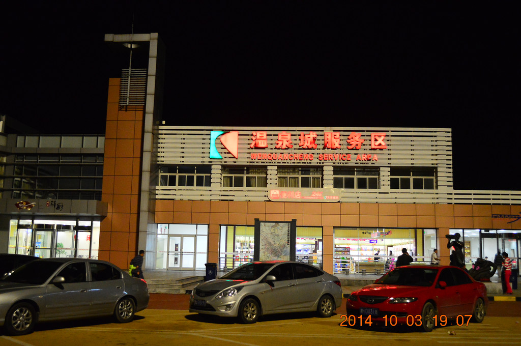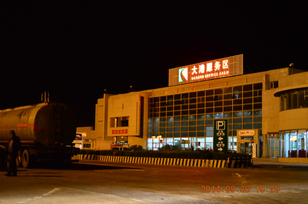 19点25分,抵荣乌高速大港服务区休息,累计行驶1067公里。