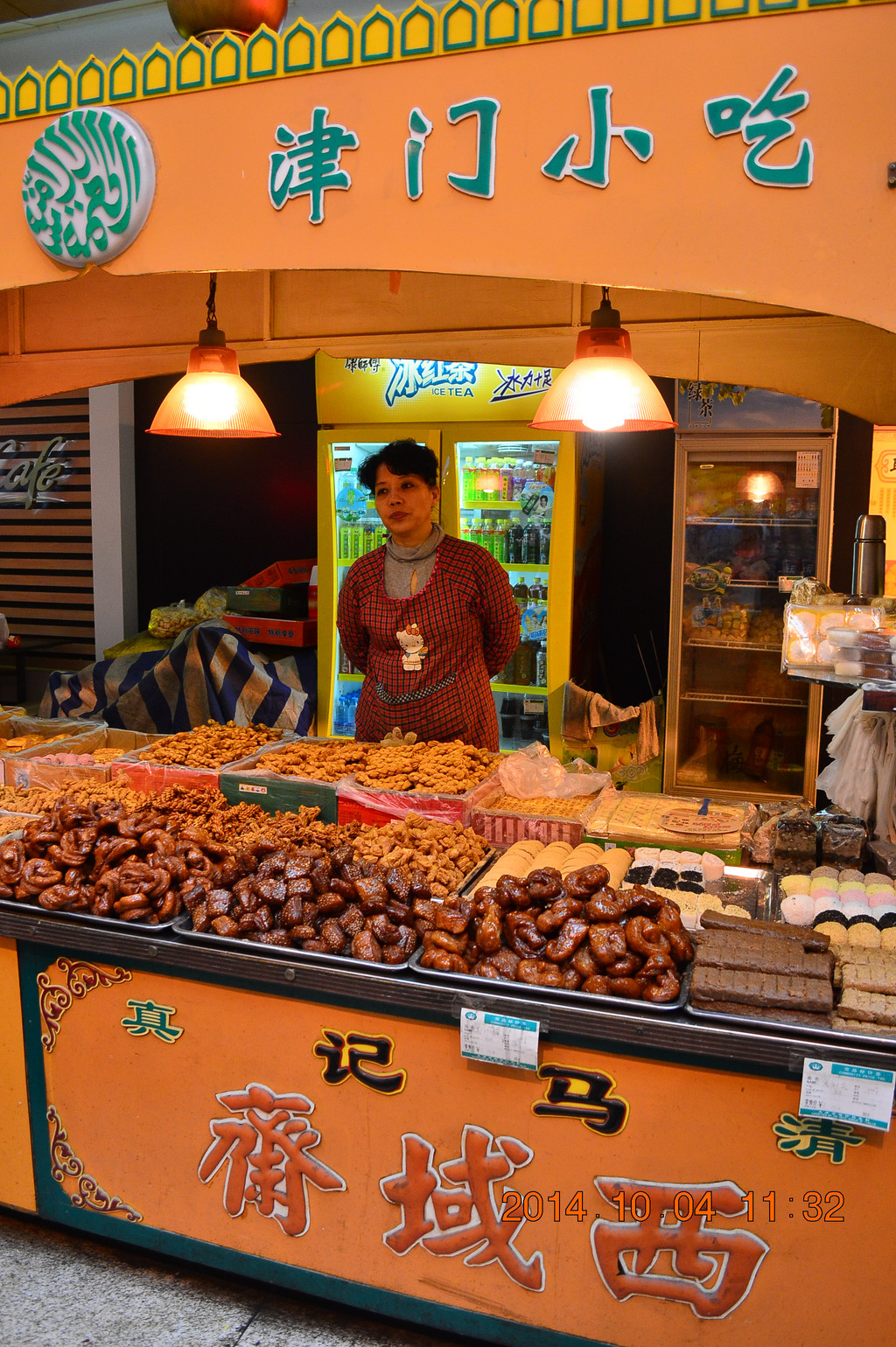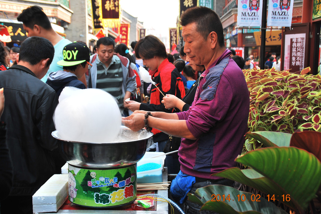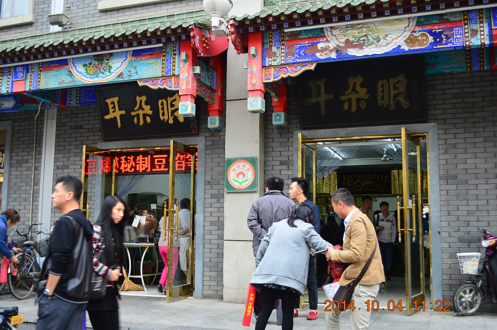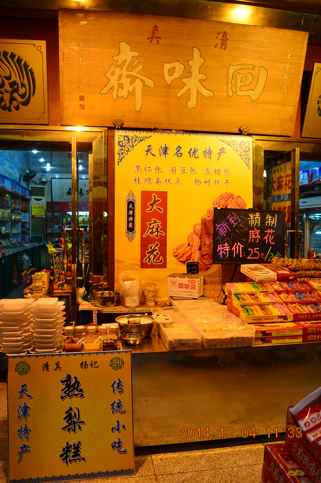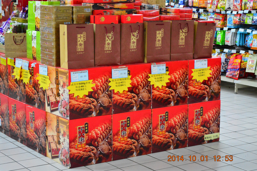 街上有很多卖麻花的商店,不少都挂着桂发祥的招牌。