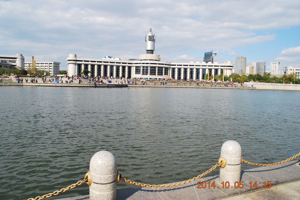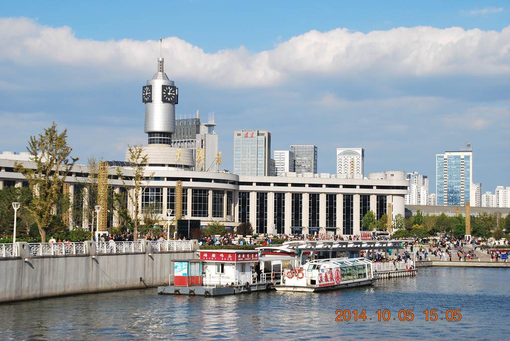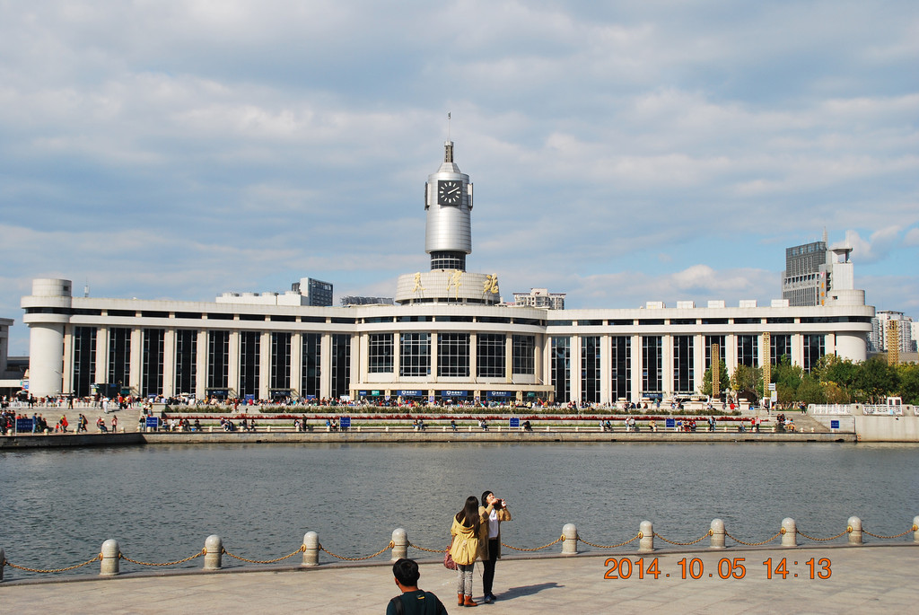 从桥南张自忠路一侧的河滨拍摄天津火车站。天津站南临海河,其风景在全国火车站中十分特别。