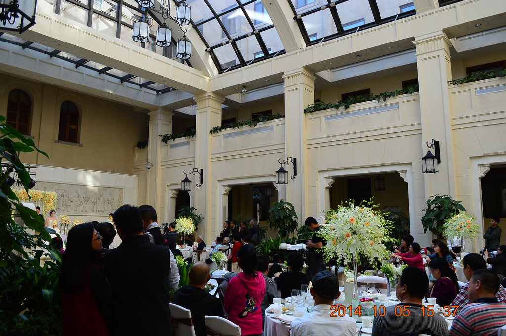 酒店内正在举行婚礼。不同于上海,北方的婚礼宴席大多在中午举行。