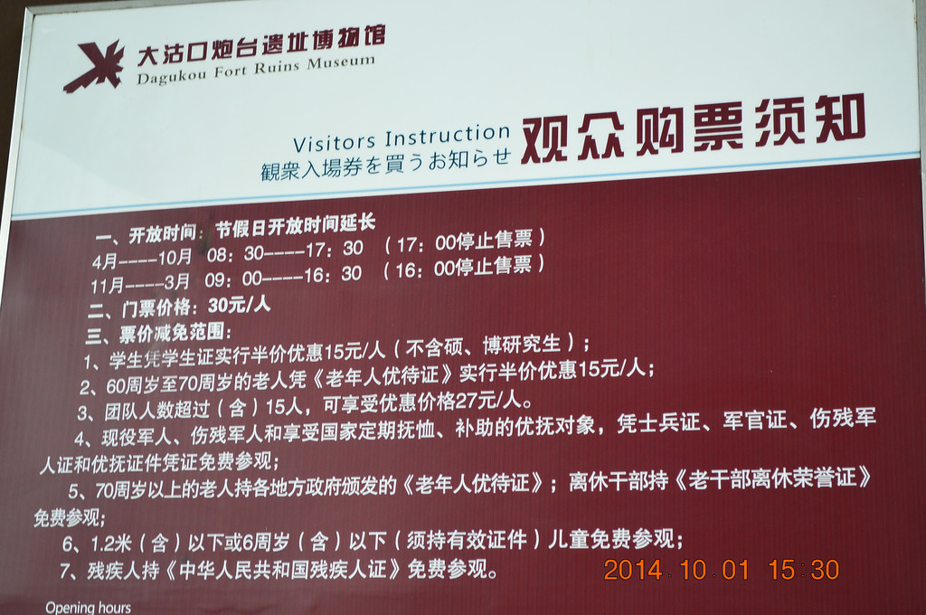 大沽口炮台,国务院1988年1月13日公布的第三批全国重点文物保护单位,革命遗址及革命纪念建筑物类,时代为1858年。大沽口炮台原置于海河南北两岸,素称“津门之屏”。南有虎门,北有大沽,这是中国近代史上两座重要的海防屏障。门票30元。