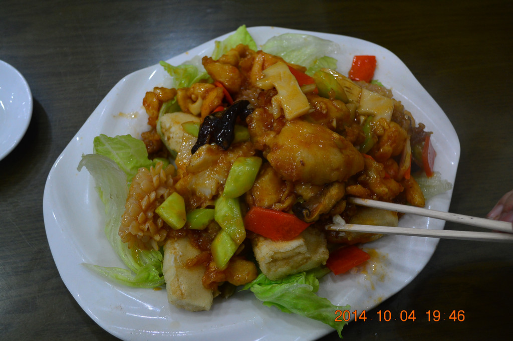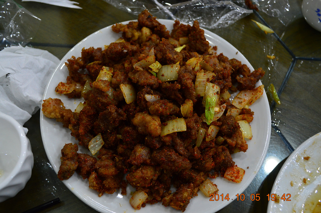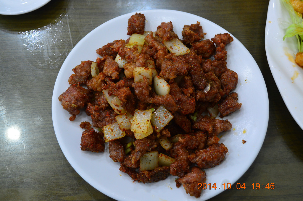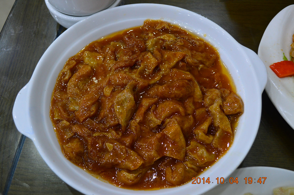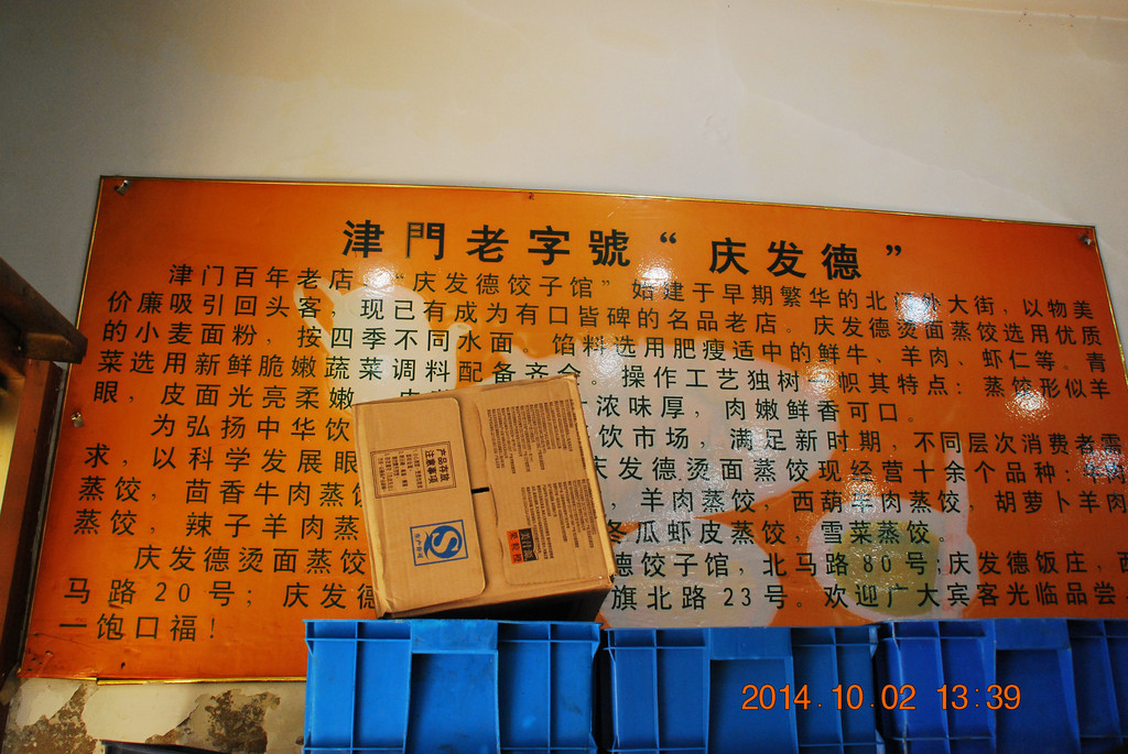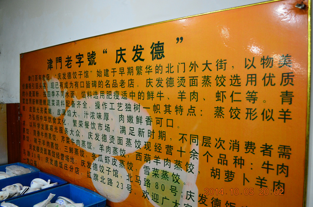 晚上在北马路上的庆发德饺子馆吃晚饭。这是一家清真的餐饮老字号,牛肉饺子和羊肉饺子特好吃。下图所拍为八珍豆腐,是天津特色菜之一。