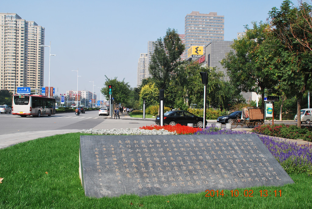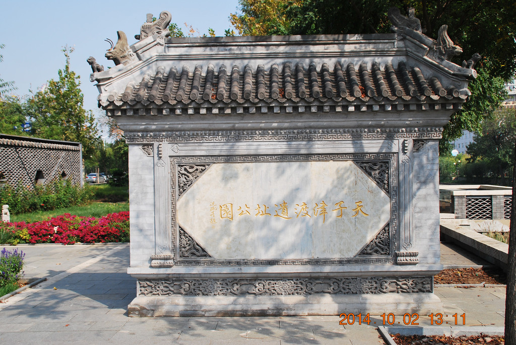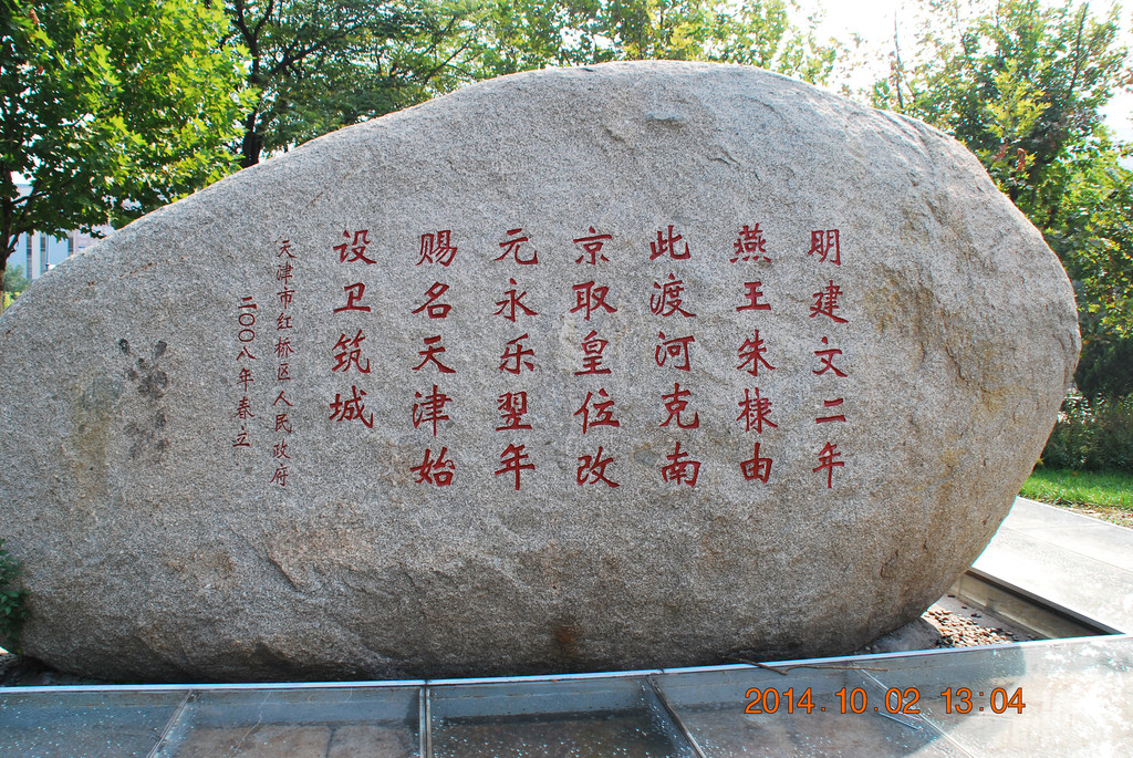 天子津渡遗址公园。明建文二年,燕王朱棣由此渡河。克南京、取皇位,改元永乐。翌年赐名天津,始设卫筑城。