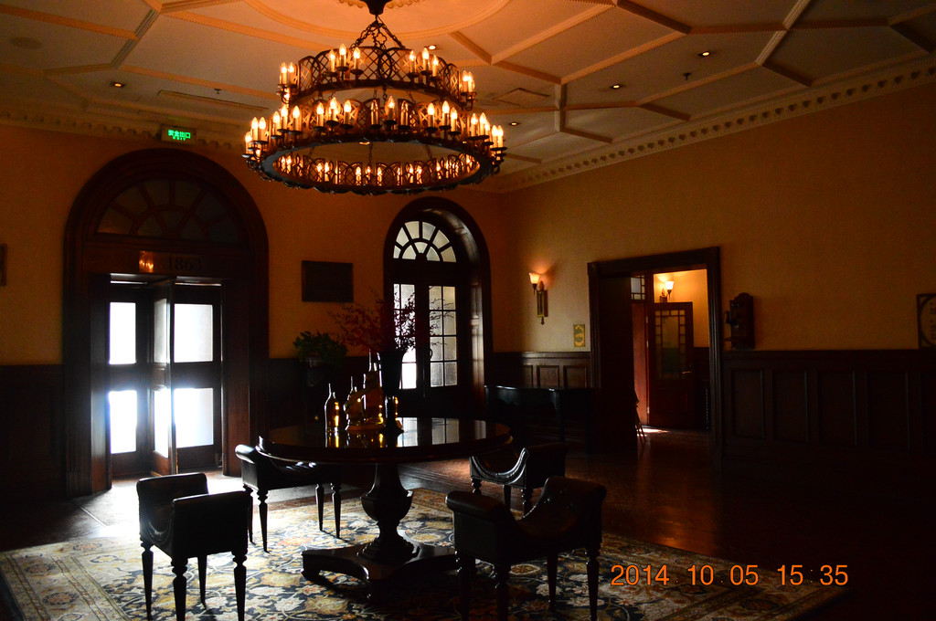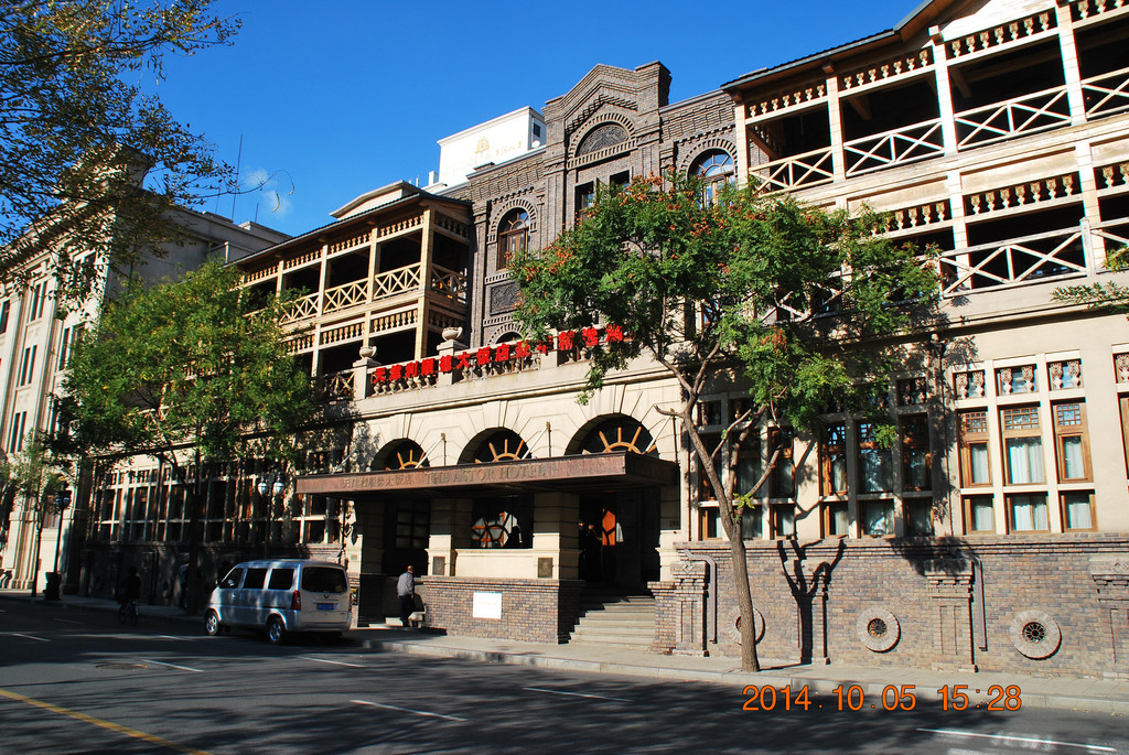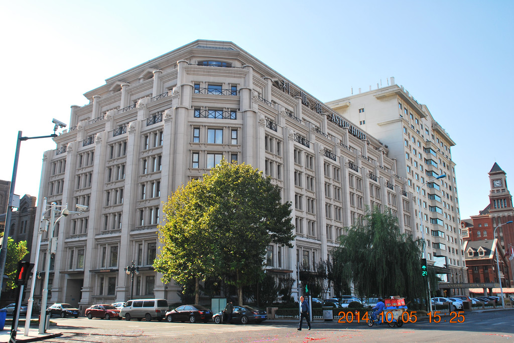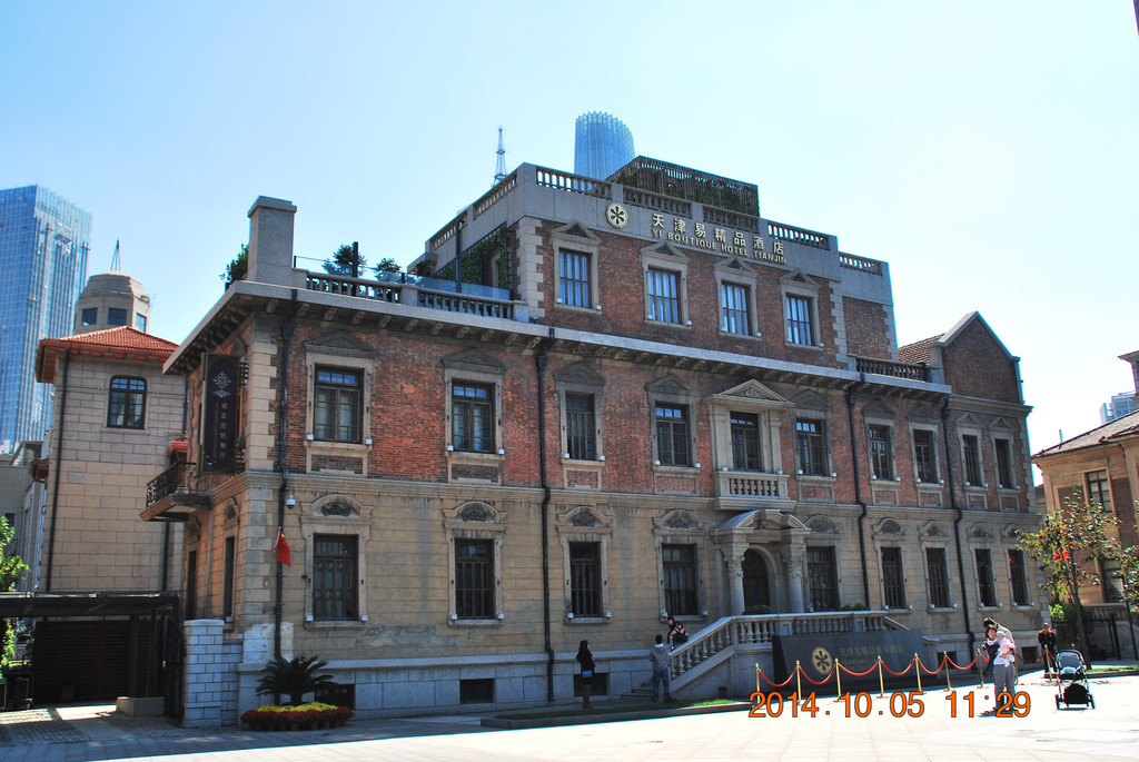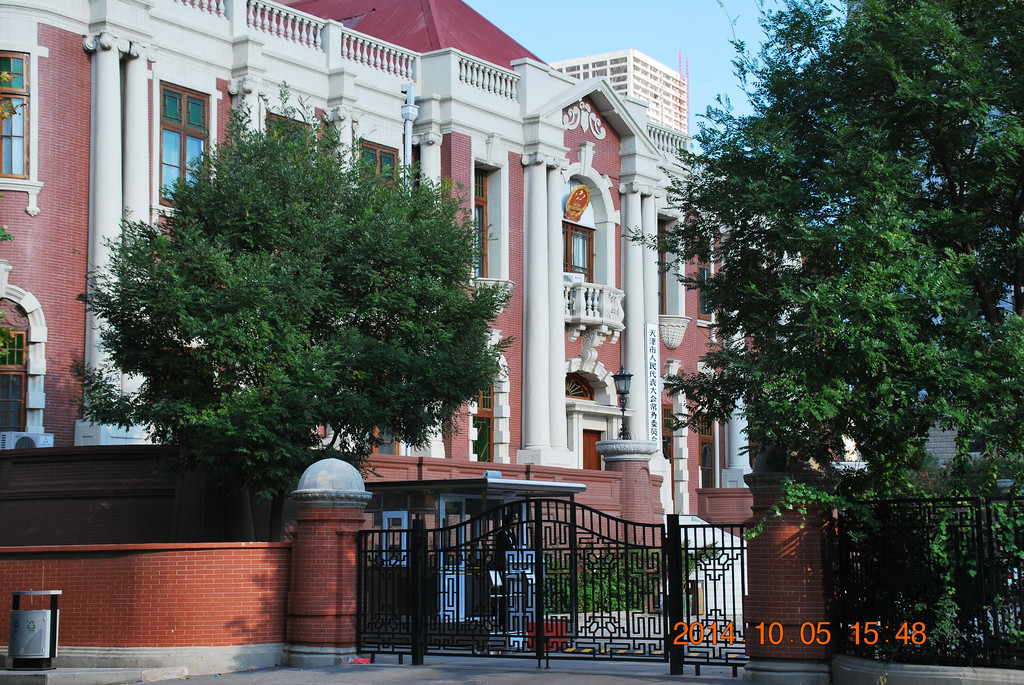 利顺德饭店旁的大楼为原英国俱乐部,现在是天津市人大常委会办公楼。