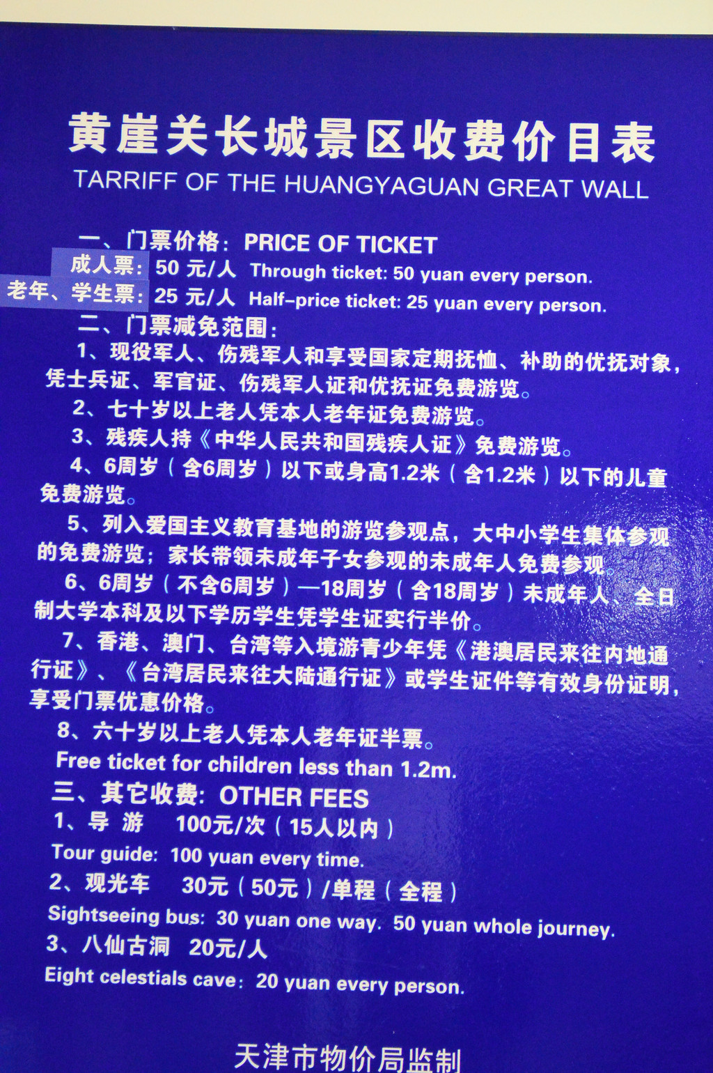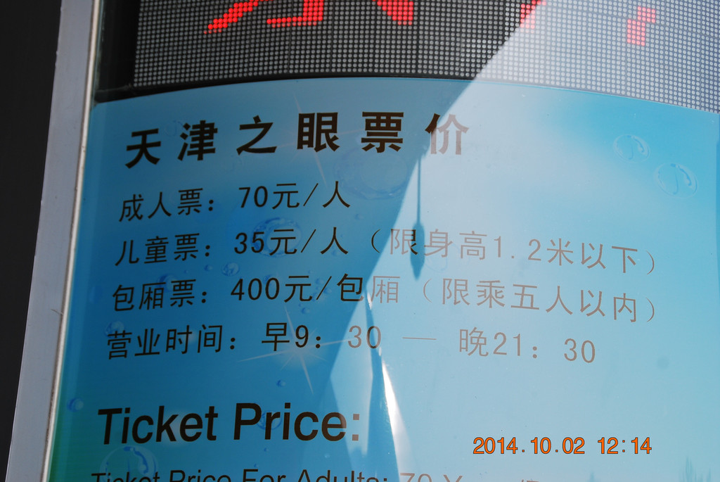 天津之眼的票价。若有恐高症的话就算了。