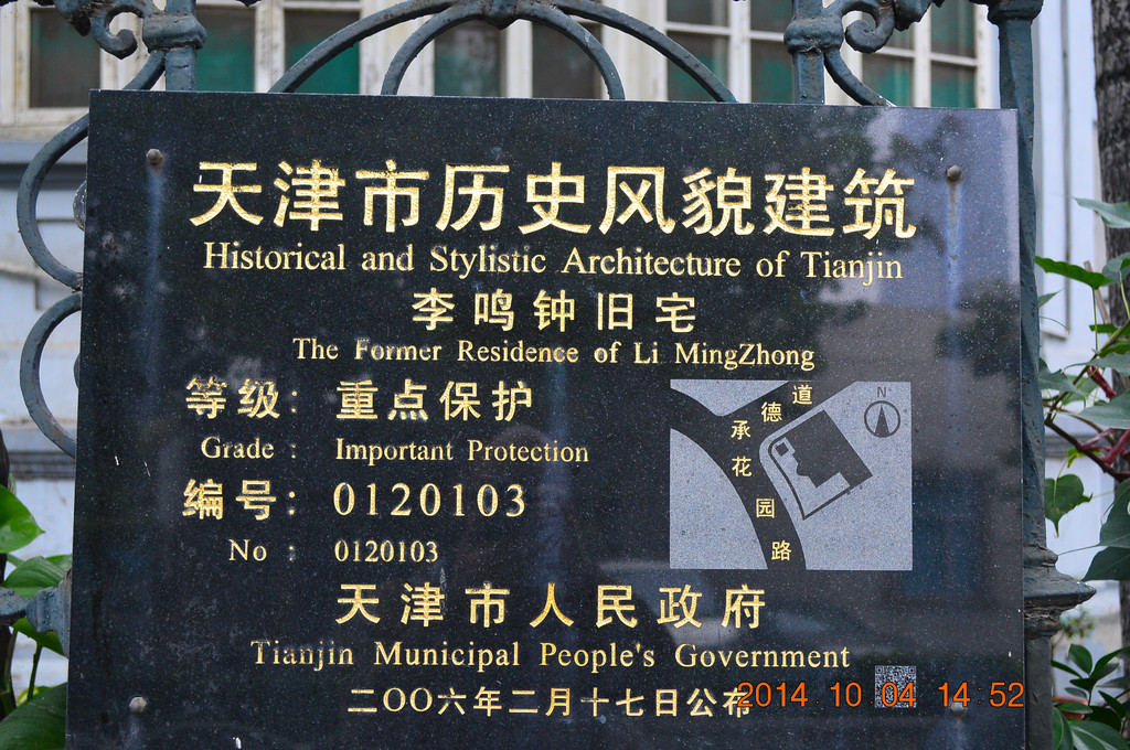 李鸣钟旧居,主楼建于1920年,现由民建天津市委员会办公用。