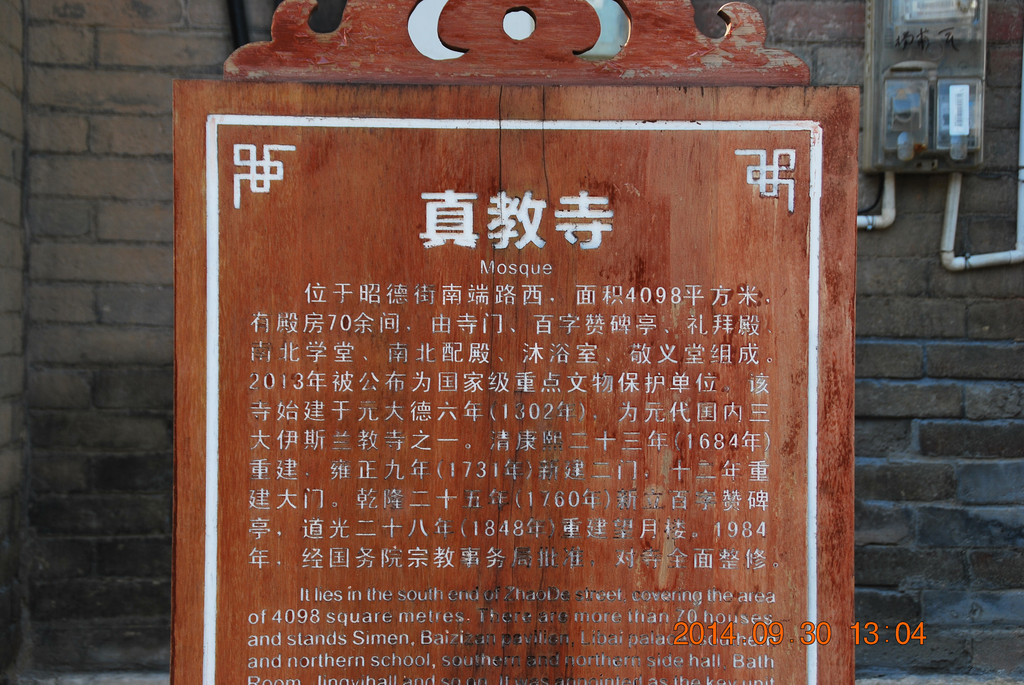 昭德古街上最有价值的文物——真教寺。青州真教寺,国务院2013年3月15日公布的第七批全国重点文物保护单位,古建筑类,时代为清。门票20元。据寺内碑文记载:大元大德六年(公元1302年)元相伯颜后裔所立,为我国元朝三大伊斯兰教寺之一。