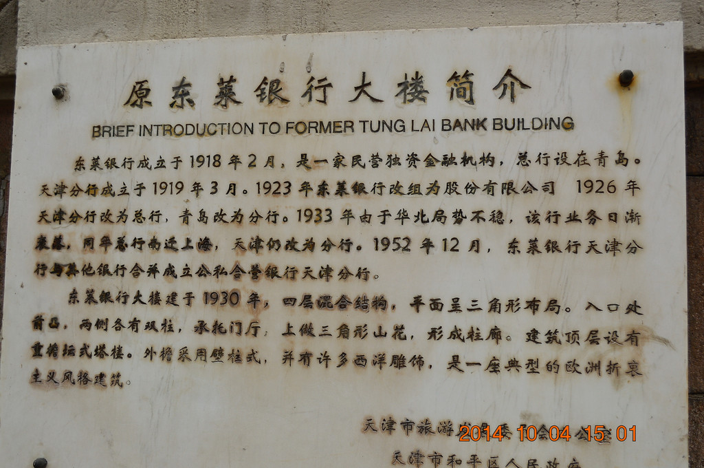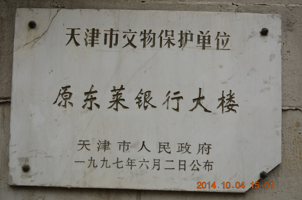 原东莱银行大楼,天津市文物保护单位,建于1930年,位于承德道和平路拐角处。