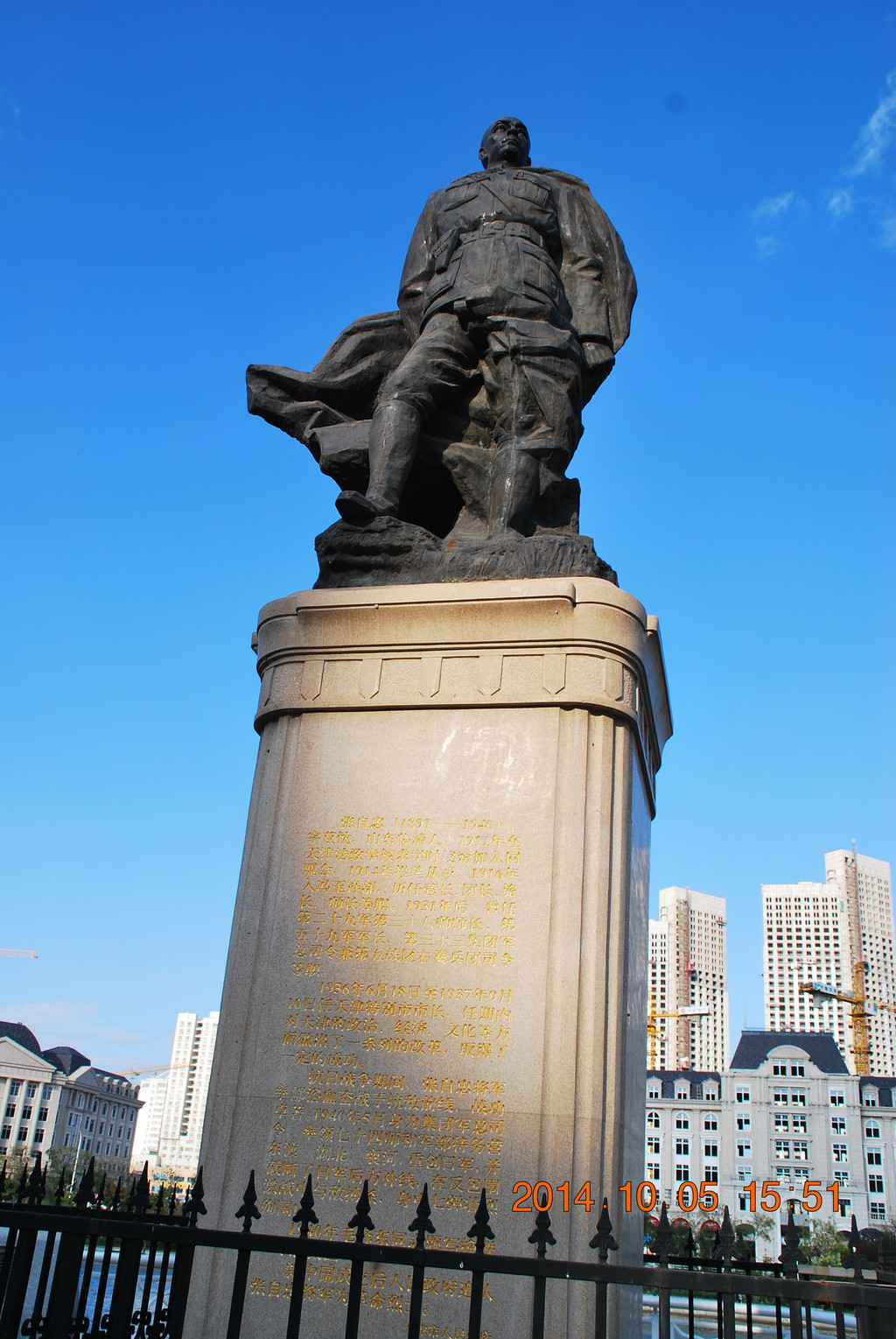 海河边的张自忠像。张自忠是著名抗日将领,1936年6月18日至1937年9月10日曾担任天津特别市市长。