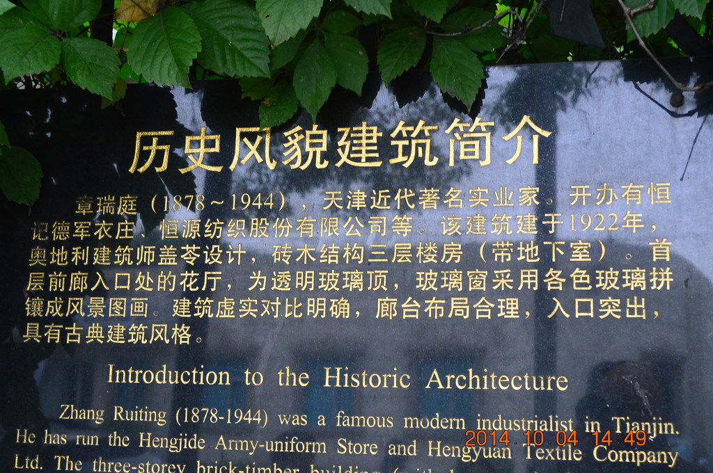 章瑞庭旧居,天津市文物保护单位,主楼建于1922年。