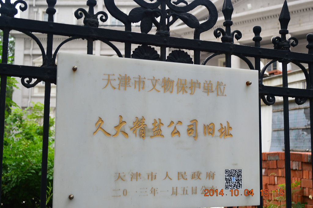 久大精盐公司旧址,天津市文物保护单位,始建于1920年,位于赤峰道丹东路拐角处。