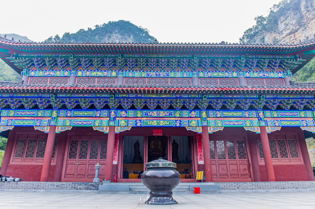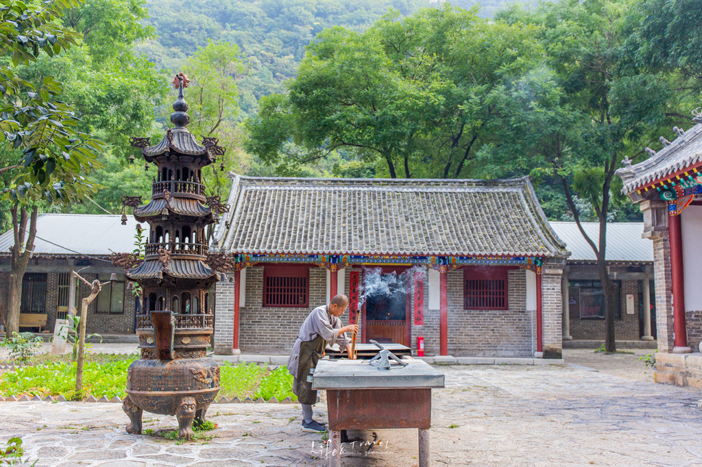 钟楼、鼓楼、佛殿、伽蓝殿、文殊阁、三角堂等,现在都已经重新修复。整个寺院并没有多大,但却一应俱全。