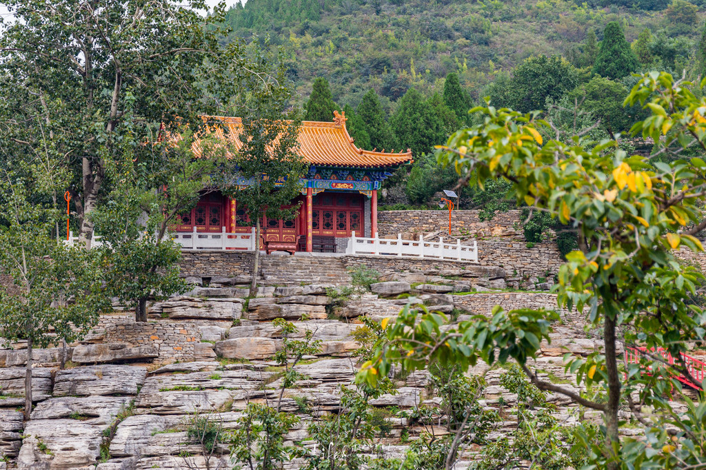 秋季一到,漫山红遍、层林浸染的绝美秋色绝对会让你满足。进入村子,看见有路边彩色的建筑在修建,想必是以后住宿的酒店吧,彩色很是亮丽,与村子形成鲜明的对比。一入村子,左侧便可远远的看见,山石之间的“龙王庙”,龙王庙景区由龙王庙、凤仪亭、上善亭以及两段蜿蜒的人工台阶路组成,寓有“龙凤呈祥”之意。在加上环绕周边的溪水,像是小型的“北方小江南”呢。