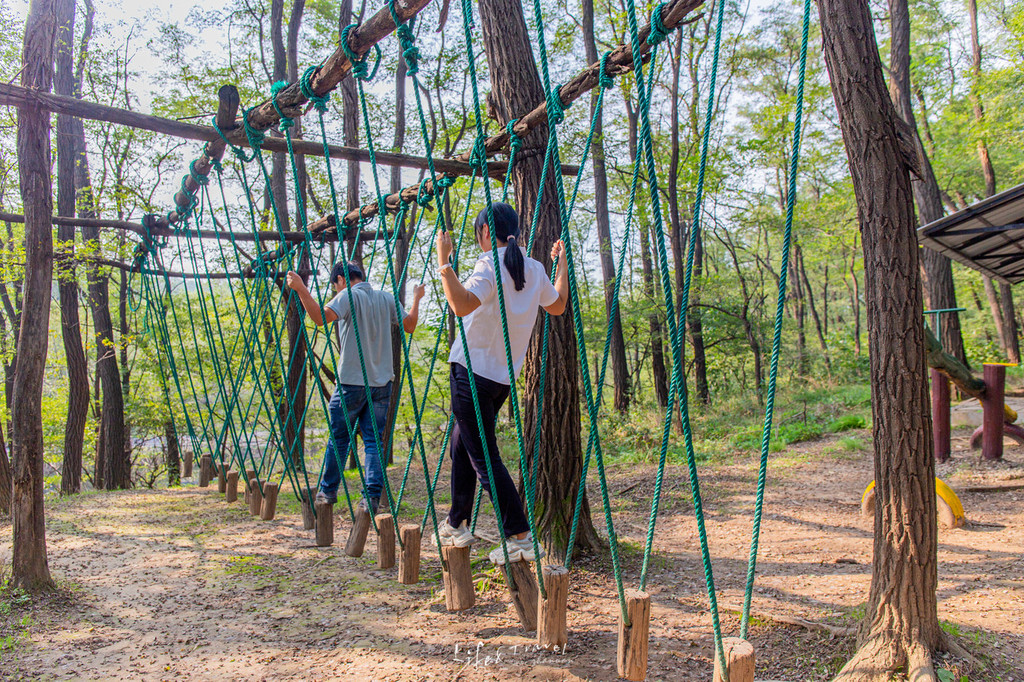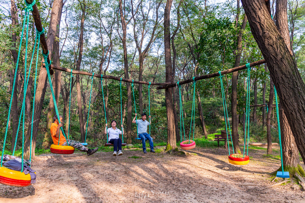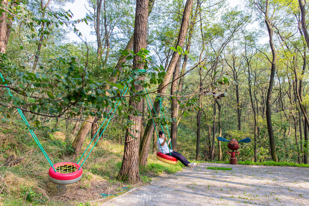 于大片的刺槐林中,一栋栋的树屋散落其中,互不打扰却又环绕其中。在树林中若隐若现,仿佛仙境一般。在这样的树屋里,晒着太阳,喝茶聊天,是别有一番味道的。