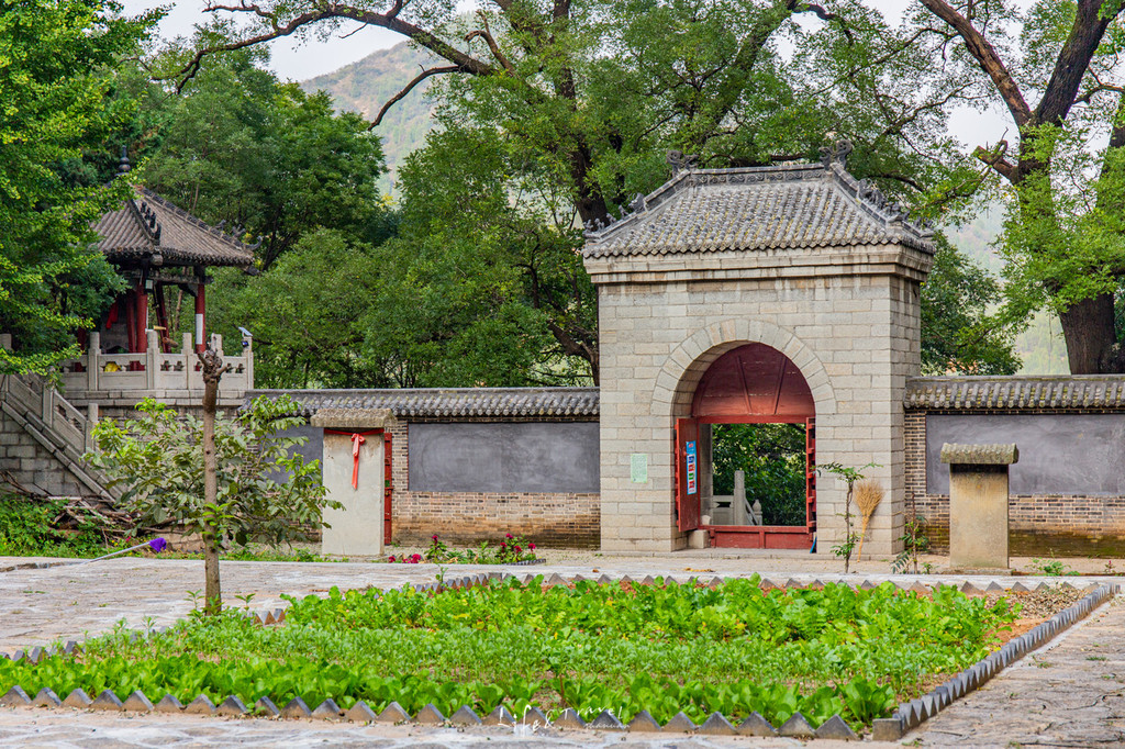 有写着“寿比南山”字眼的石碑立于院中,与山顶的“寿”字遥相呼应。