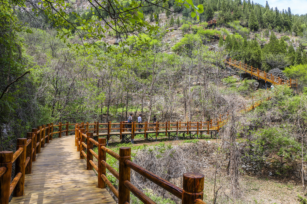 在谷底踏水而上,沿着一条近1200米的木栈道,观赏 山东 第一崖壁飞瀑,体验峡谷漂流,可登上黄花坡聆听美丽动人的爱情故事,感受崮顶人家的民土风情。