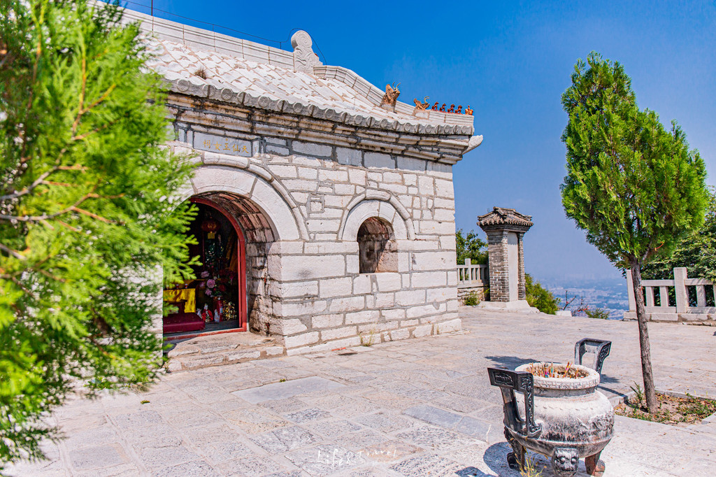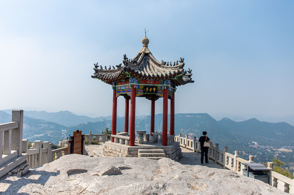 继而再踩着陡峭的阶梯上山顶,便可抵达云门山的主峰,主峰名大 云顶 ,形若鱼脊,东西走向,上多寺庙宫观。山巅植“东岳大帝”之宫,树“泰山老母”之祀,东西建阆风亭,修盘山石级968级。建有云门山天仙玉女祠,古色古香,很是宏伟壮观。