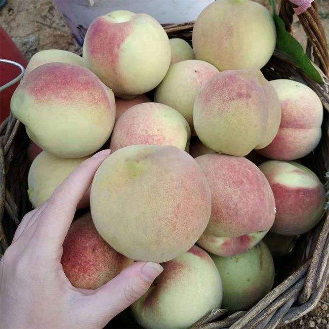 青州 蜜桃,果实圆球或扁圆球形,果顶平圆,顶尖微突偏向一方,略凹于顶部,原产 山东 省 青州 市山区。因实生繁殖,变异较大,可分为早熟蜜桃、中熟蜜桃、晚熟蜜桃、特晚熟蜜桃和 青州 光桃。完熟后汁液多,味甜,风味稍淡,食时有纤维感。