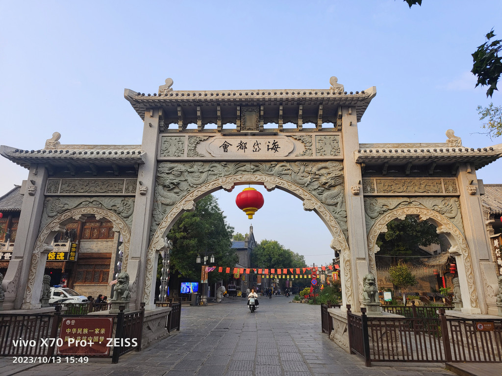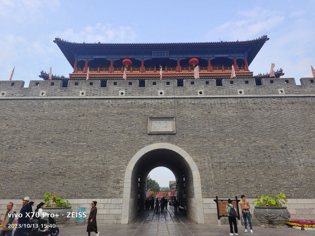 2023年10月13日下午3点看完博物馆,3点20分乘k6路前往青州古城,k6路公交是一条单行线,只有内环,没有外环,从博物馆始发,基本上绕古城一圈,返回博物馆,途中经过古城北门和南门,我们从南门阜財门下,然后进城门往北走,自北门出,不远就到酒店,这样省的走回头路。