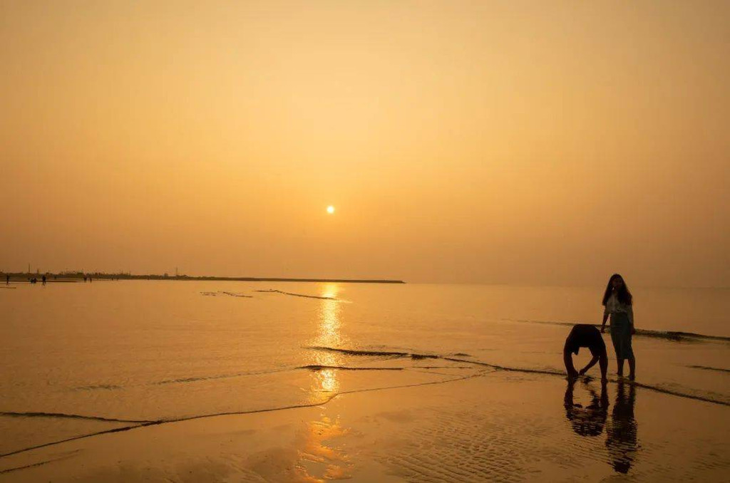 这次我早起,还看到了绝美的染黄天际的朝霞、邂逅了赶海的人们。