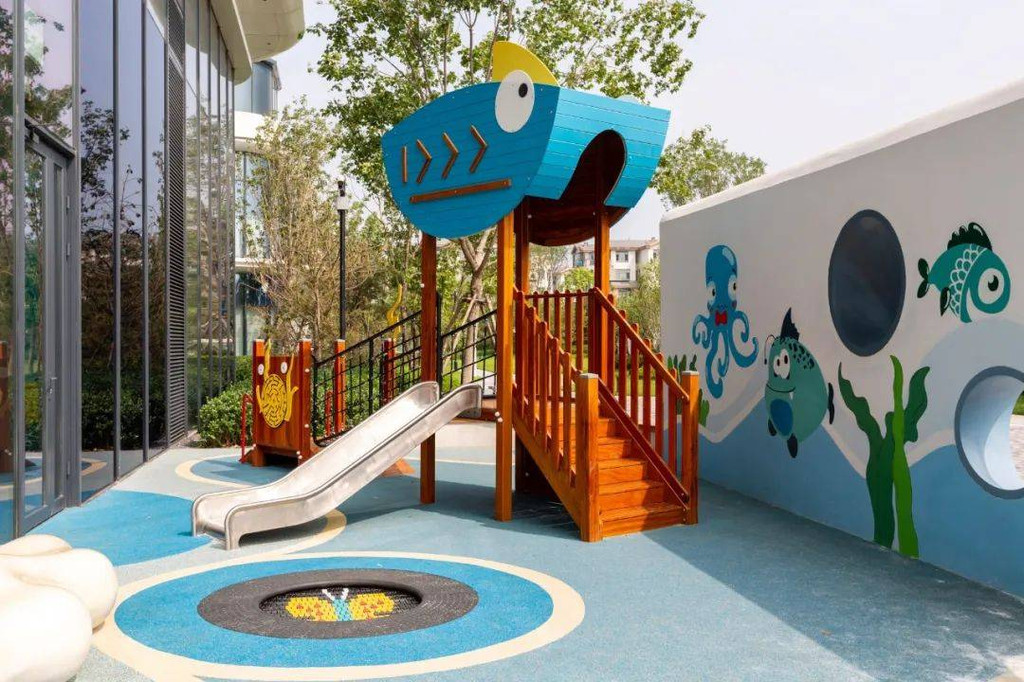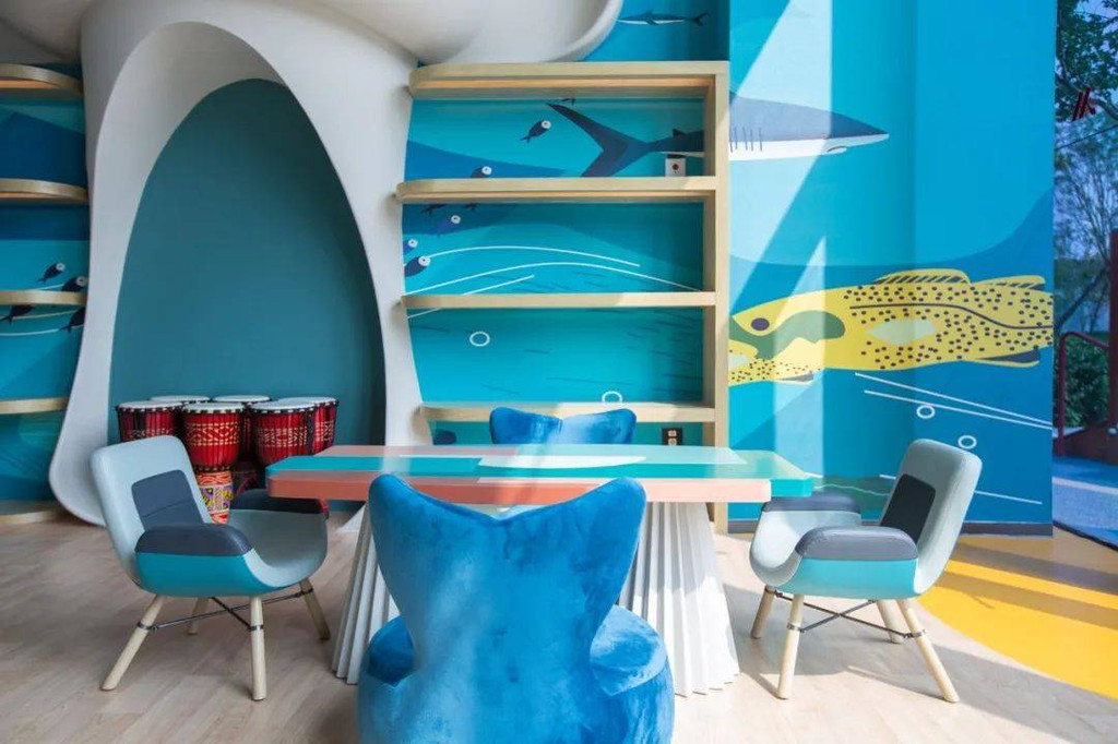 对遛娃家长来说,度假都不愁无处可去。酒店一楼有儿童俱乐部,蓝色海洋主题设计,室内外都有不同区域:滑梯及海洋球区、玩具区、DIY等,能充分释放孩子天性。