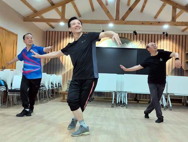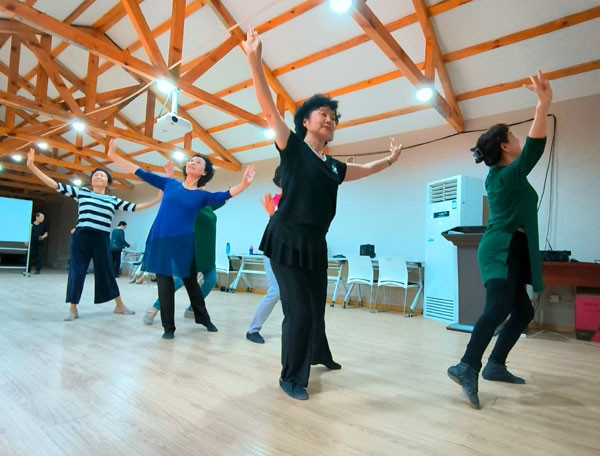 当日下午,记者走出客房信步来到与之相连的智能温室园中园,见到一些兵团战友们正在进行舞蹈排练。这是一群迸发着青春活力的舞者。他(她)们都是年纪最小的均已超过70的原黑龙江兵团的战士。他(她)们戏称自己是永远充满活力的年轻人,要为当晚举行的联欢会奉献一个精彩的节目。
