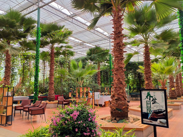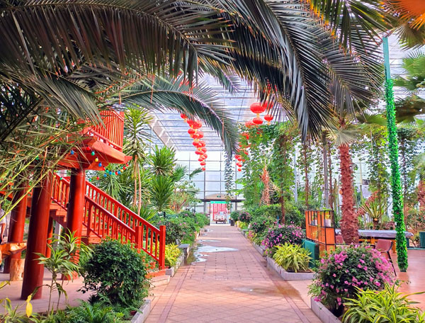 这里一年四季春意盎然,鲜花争艳,温室内建有养心亭、休闲亭,可在亭内观景赏花、品茶聊天,除此之外,园内还有棋牌室、乒乓球及台球台,不仅可以下棋打牌娱乐,而且还能进行运动娱乐锻炼。园中园内曲径通幽,瀑布、水潭、小溪环绕其中,小桥流水,鱼儿畅游,漫步于此,其乐融融。
