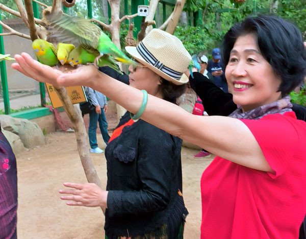 大家在萌宠乐园里观光,再次感受到了观赏动物的乐趣,似乎还有一种说不出的返老回童的意味。这里有少见稀有的矮马,孔雀鸽及飞到你手掌上觅食的鹦鹉。特别是矮马,如果没有参照物,你看不出它的矮小,不知道还以为是狗等其它动物。