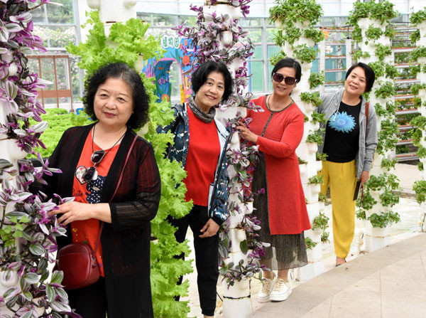 团友们参观的活菜工厂,就是园区中农科体验区的亮点之一。走进工厂的大棚内,数不胜数的各种蔬菜瓜果令人目不暇接。