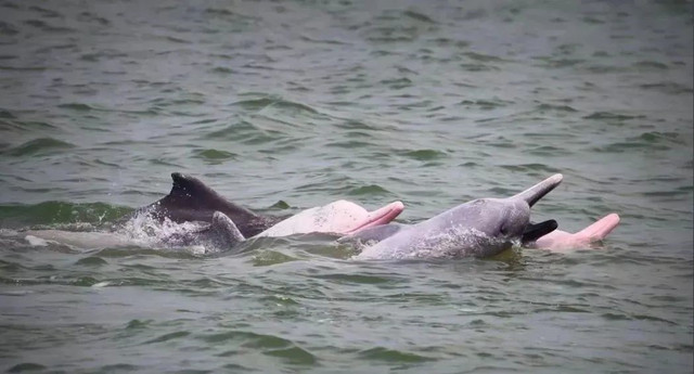 早在唐朝就已经出现了关于中华白海豚的记载。清朝初期,广东珠江口一带称它为卢亭,也有渔民称之为白忌和海猪。他们的亲戚众多,从极寒水域的“海洋霸主”虎鲸,到遍布世界的60多种海豚。虽然名为“白海豚”,但刚出生的中华白海豚体呈深灰色,幼年的会呈灰色,成年的则呈粉红色。