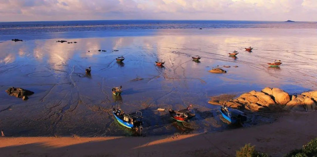 退潮时分,海岸线舒展平缓,呈现出如眠似睡的景观。遍地的贝壳和被冲刷上岸死去的鲎让人感叹自然古老的智慧——它靠着局部的摧毁与新生,引发生命的多样性。孩子们跟着渔民哥哥们在自然中行走,专心享受大自然的时序变化、潮起潮落,身体的脚步与自然的脚步同行。