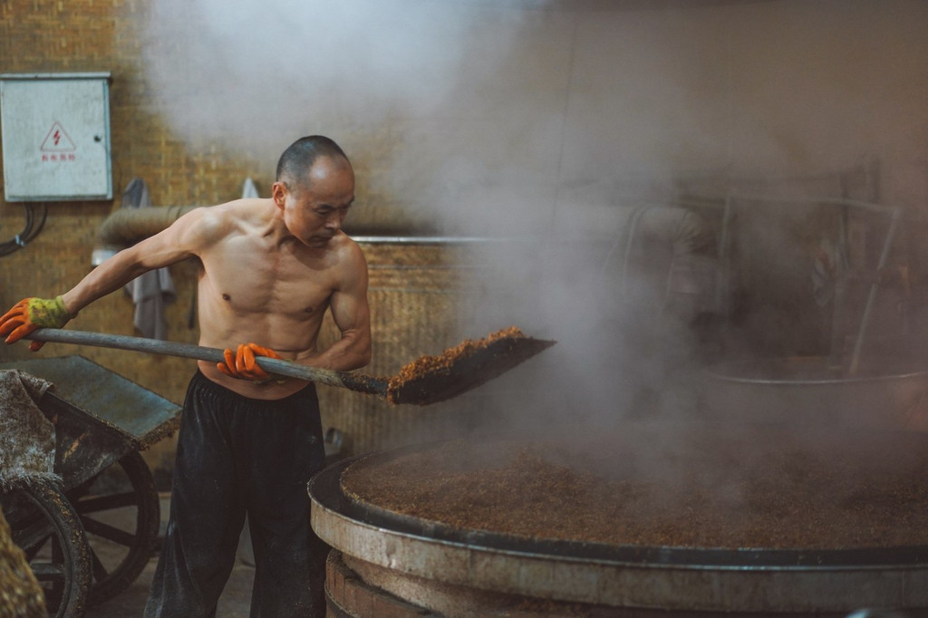 在大梁酒庄的作坊,还可以亲眼看到工人们现场酿制高粱酒。