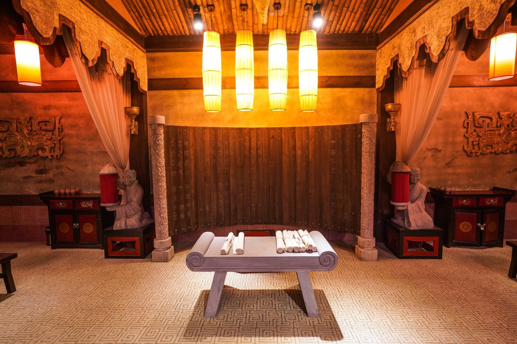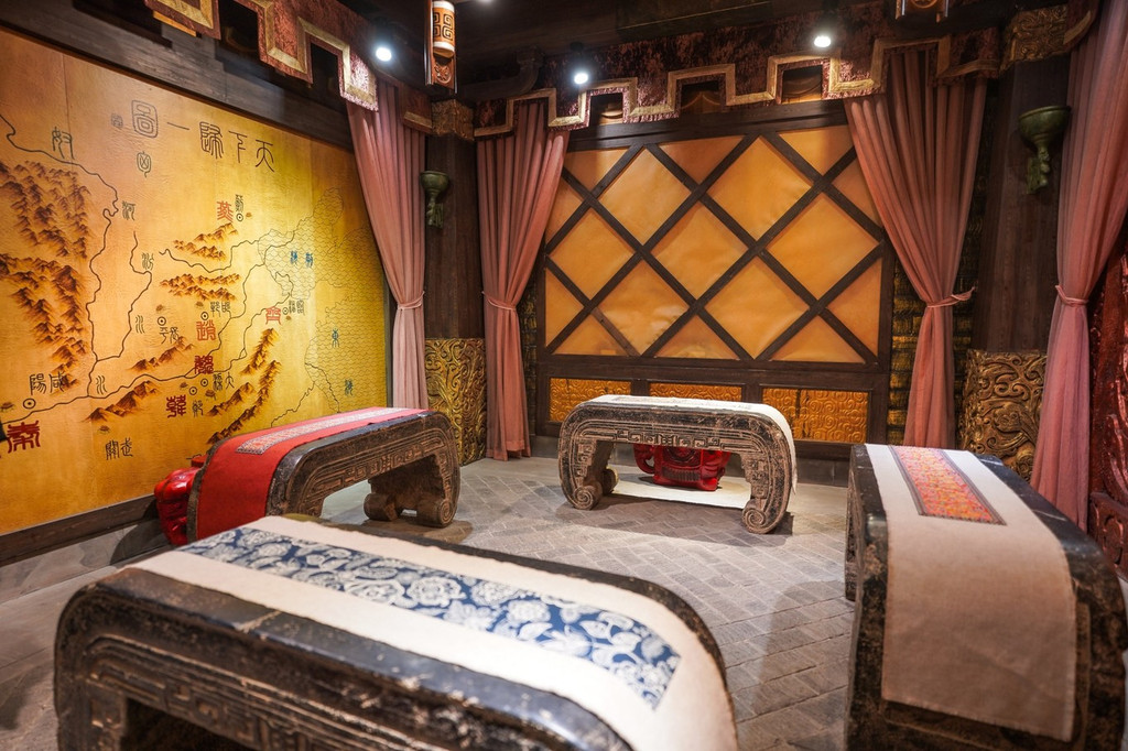 九朝会馆以中华上下五千年历史为背景,13个包间,包含春秋、战国、汉、唐、清等。