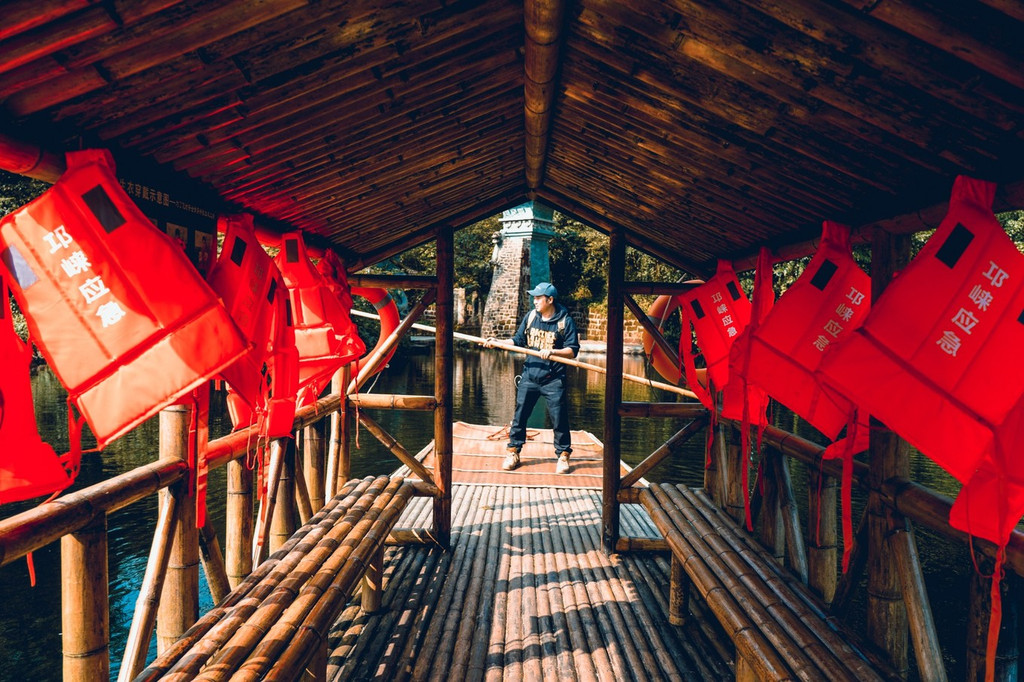 要进入十八里香草沟的话,只有一个方式就是乘坐这种竹筏进入。(竹筏20/人,往返)