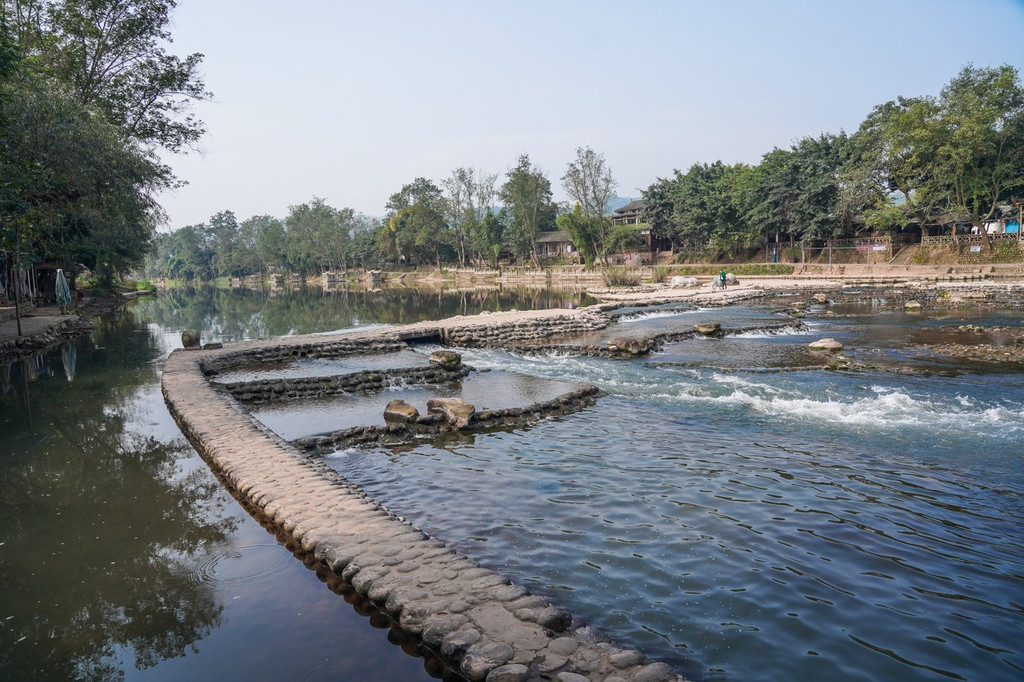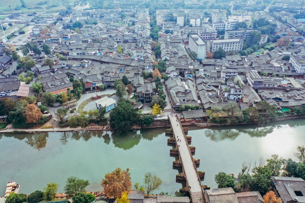 平乐古镇,古称“平落”,史前蜀王开明氏时期,平落四面环山的绿色小盆地即因 修水 利、兴农桑而起聚落而得名。据《尚书·禹贡》记载,大禹治水,“蔡·蒙履平,和夷底绩。”将穿镇而过的白沫江用飞沙堰分为“ 内江 ”、“外江”,形成一江分 三水 的独特格局。到公元前150年西汉时期就已形成集镇,迄今已经有2000多年历史了。