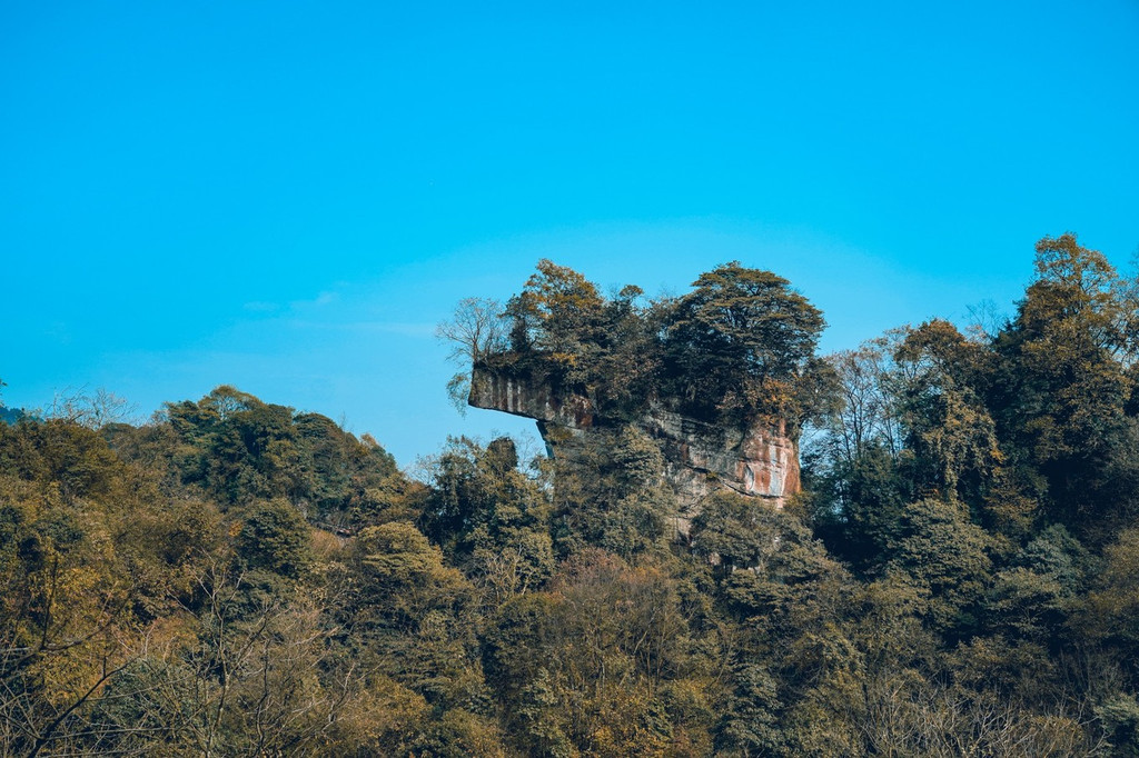 淡季来 天台 山的游客非常少,沿途很多景点和店铺都几乎没有人,我们开到半山腰的时候,看见一个形状很独特的石头,下车发现这里也是一个观景台,那个石头就是“倒靴石”。