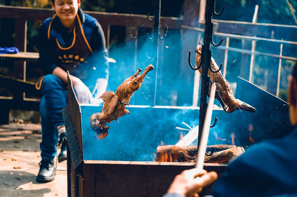 我们路过的时候,刚好遇到他们在烤鸡,也是客人点的,逛完里面的景点,出来就可以吃了。
