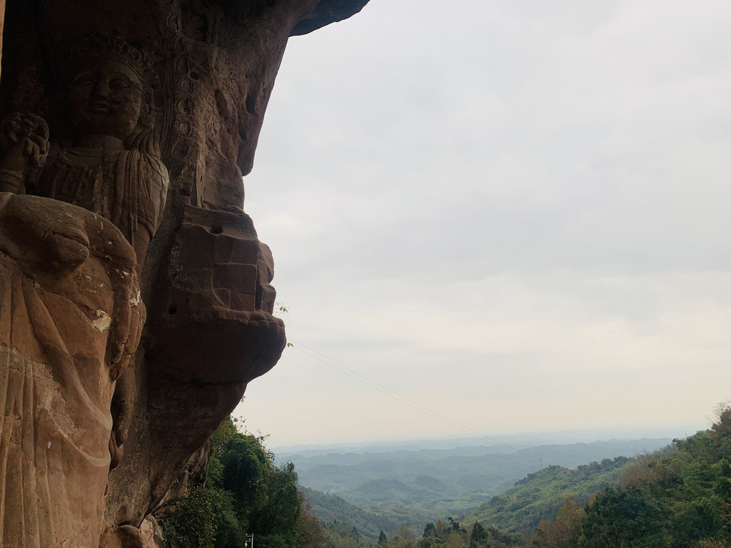 位置:邛崃深山之中,下了高速还要开很远,村道较好但狭窄,错车需当心,当地政府重点保护了石窟,竖立了很多路牌。正门口只有个很小的停车场,山门距离石刻尚有段路。石窟整体处于山坳的一处山坡,未正对峡谷,风水稍显特殊。值得一提的是山门附近据说是南唐后主李煜的墓,有其手植的皇柏一株,也不知他是怎么一江春水向西流,流到文君故里来的,也因为他,这个乡取名大同乡,“天下大同”之意。