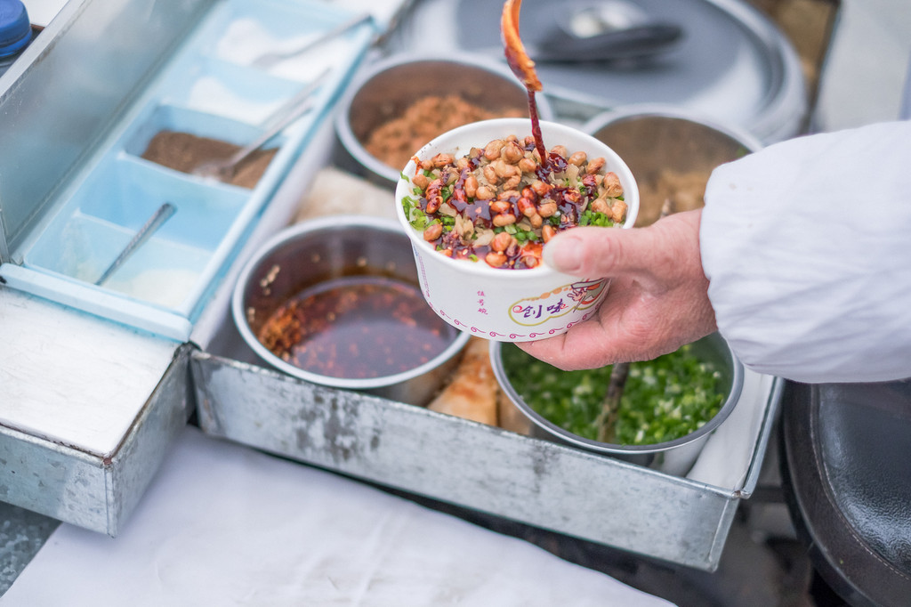 他家的臊子更是让人垂涎,酥脆的笋干和肉粒,冬天再加一把豌豆尖,一点红辣椒油,一口混着脆爽、清甜、嫩气下肚。