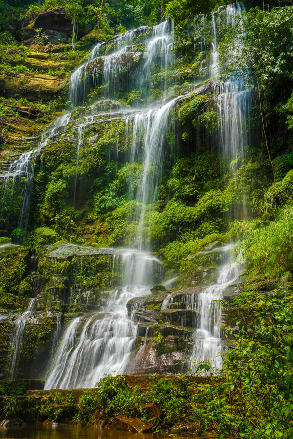 我站在瀑布前,任由水珠打湿了衣襟,那份清凉直透心底,瞬间驱散了夏日的炎热。