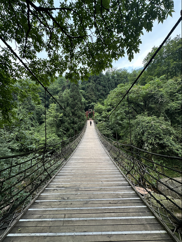 站在桥上,脚下是潺潺的溪流,耳畔是清脆的鸟鸣,让人不由自主地放慢了脚步,细细品味这份宁静与壮美。我小心翼翼地走过索桥,每一步都踏出了心跳加速的兴奋与刺激。