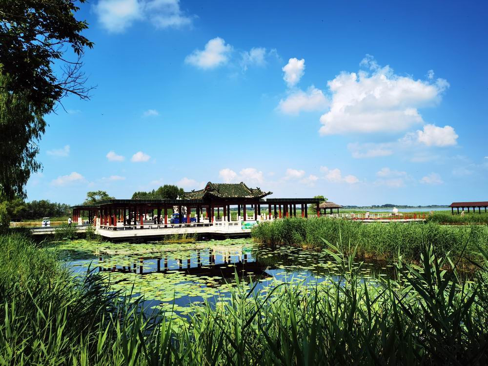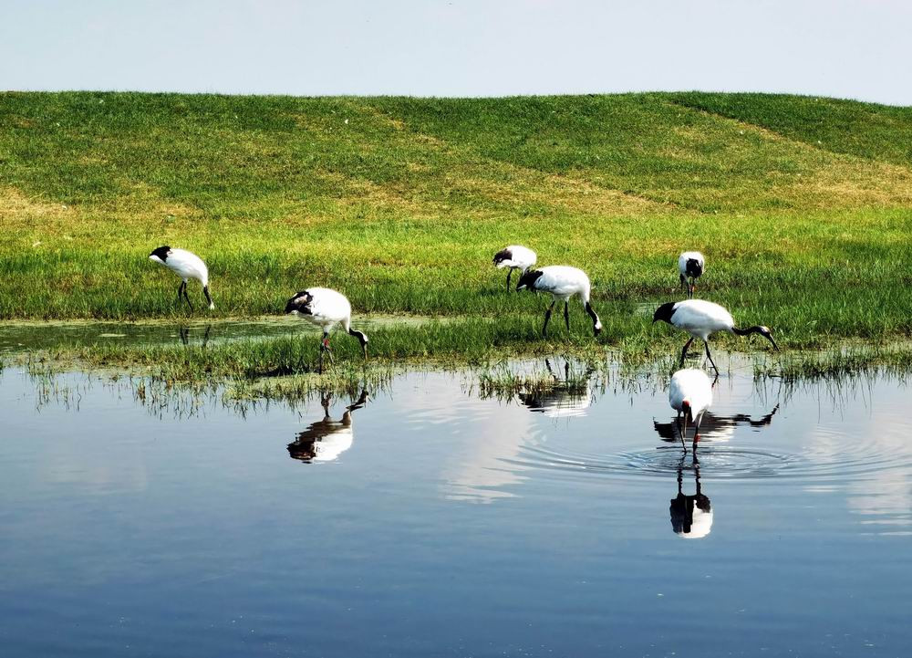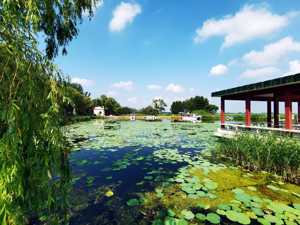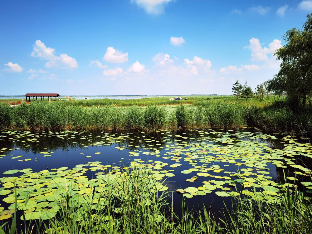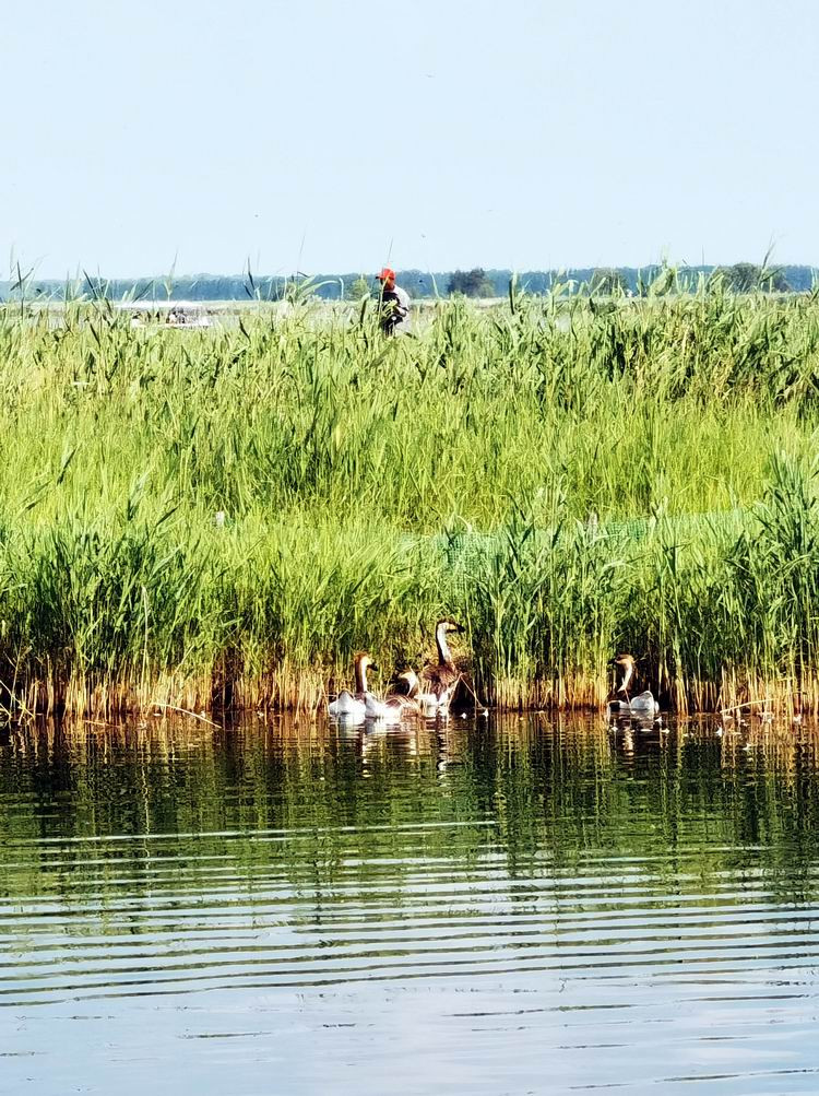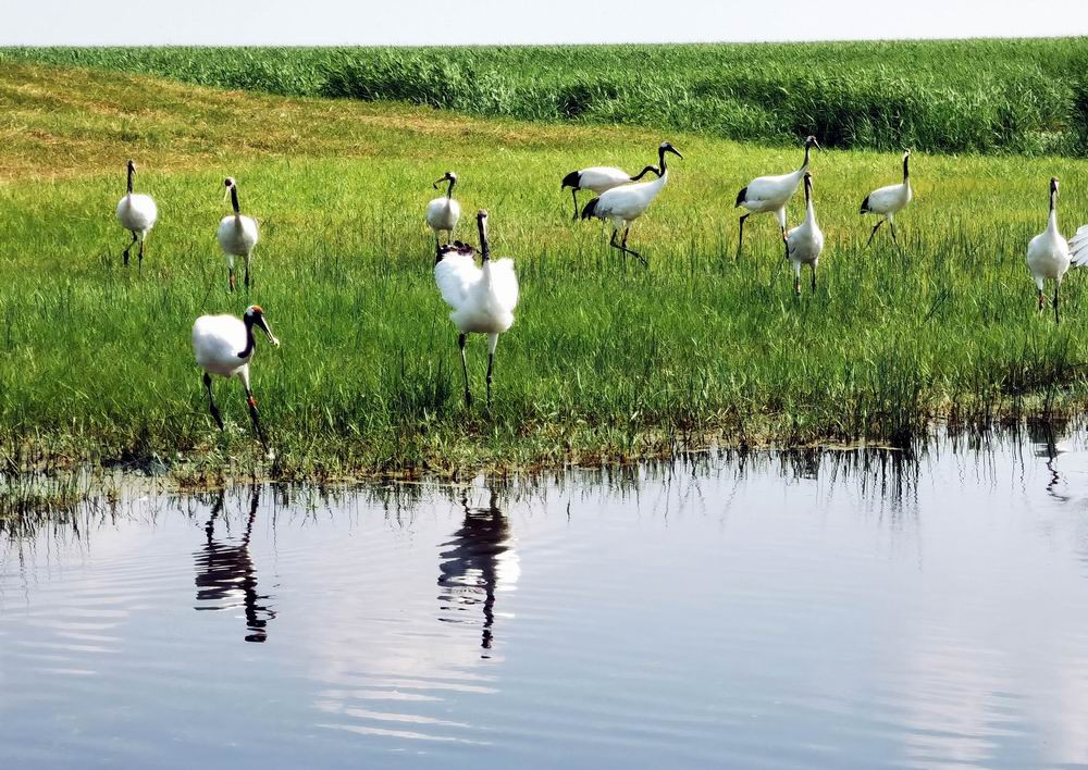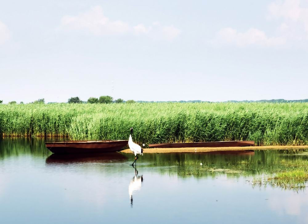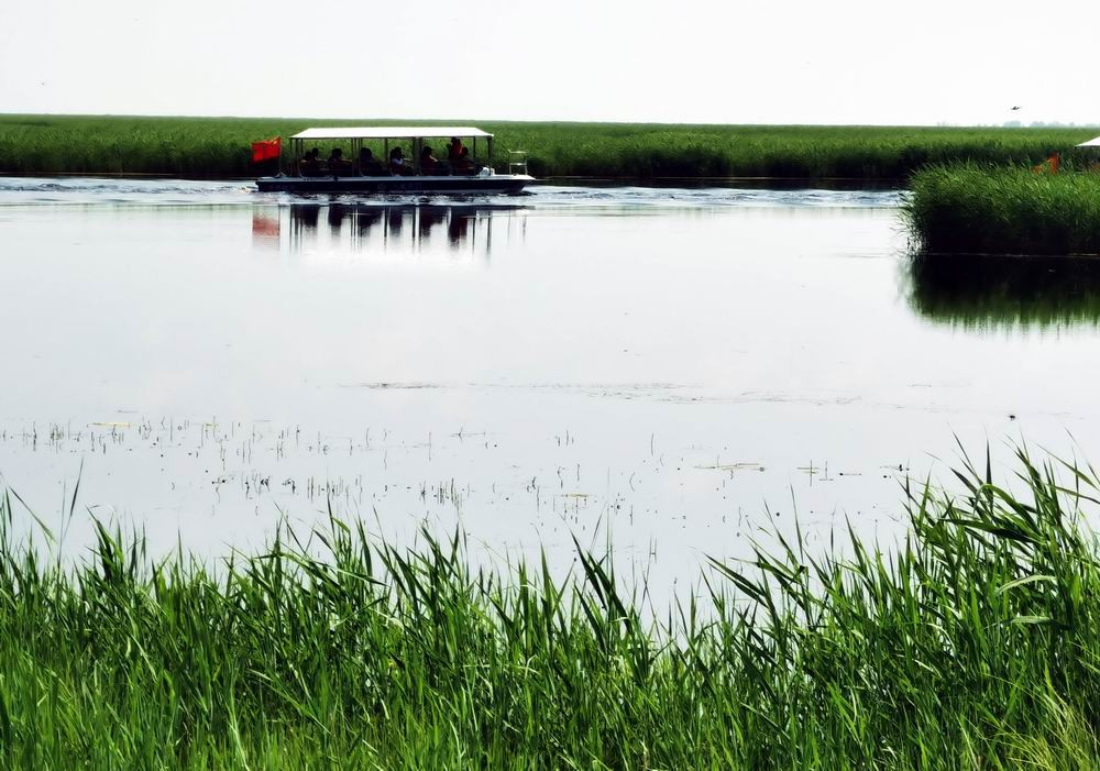 一路上看河道纵横,湖泊、沼泽星罗棋布,道路两旁满是绿油油的芦苇和各种禽鸟,美不胜收。