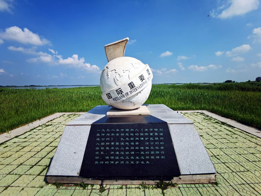 扎龙国家级自然保护区是我国以鹤类等大型水禽为主的珍稀水禽分布区,是世界上最大的丹顶鹤繁殖地。扎龙景区也是国家4A级旅游景区。图为扎龙国家级自然保护区的纪念碑。