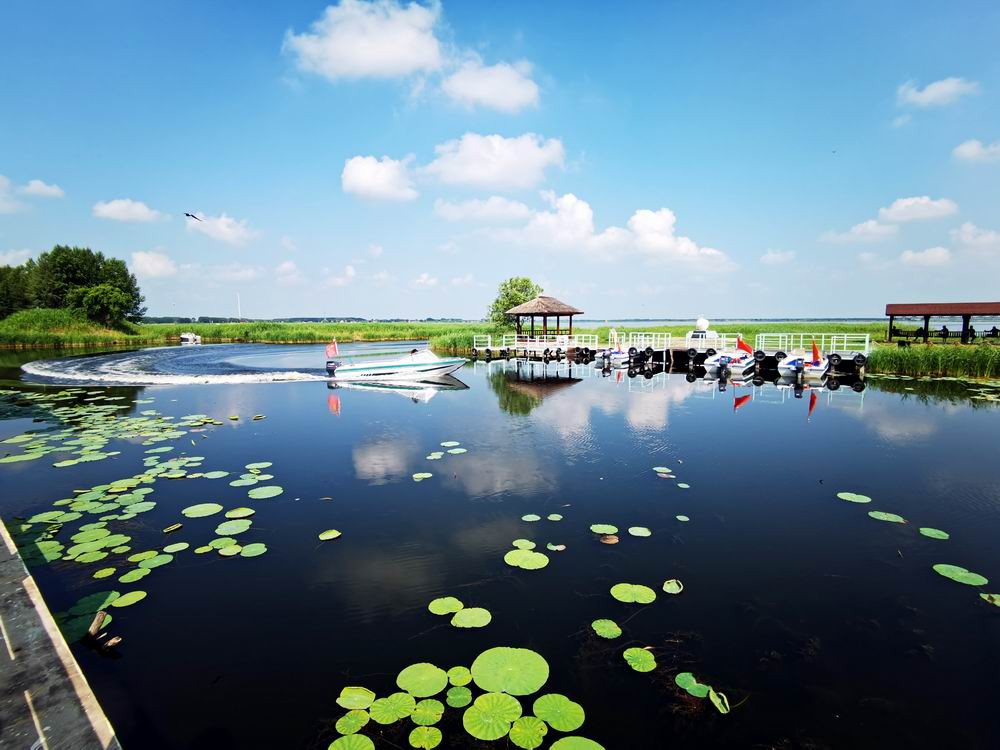 湿地中还有一个很大的扎龙湖,可以乘坐快艇直达丹顶鹤野生放飞区。