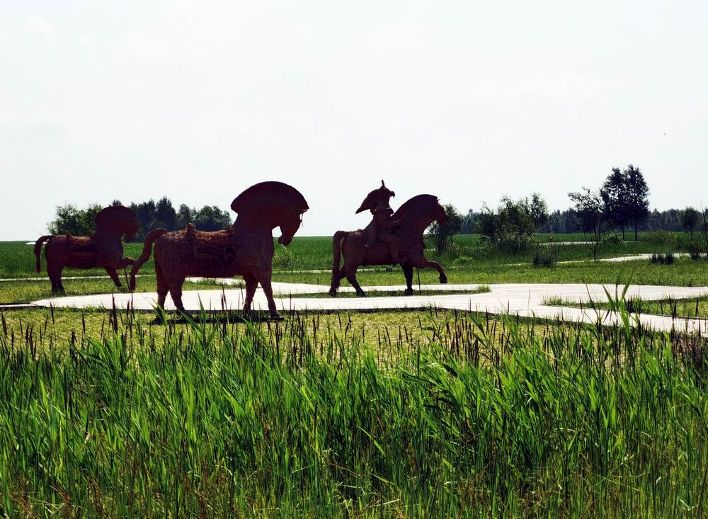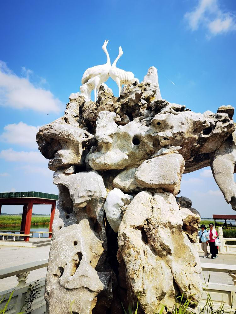 我仍然沿芦苇荡走回停车场,因为沿途可以拍照。这是一个广场上的雕塑。